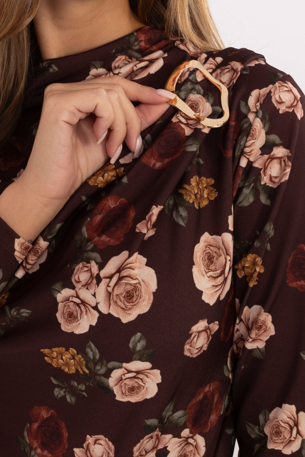 Modelis dėvi universalaus dydžio drabužį. Modelio matmenys: ūgis 176 cm, krūtinės apimtis 90 cm, liemens apimtis 62 cm, klubų apimtis 94 cm.