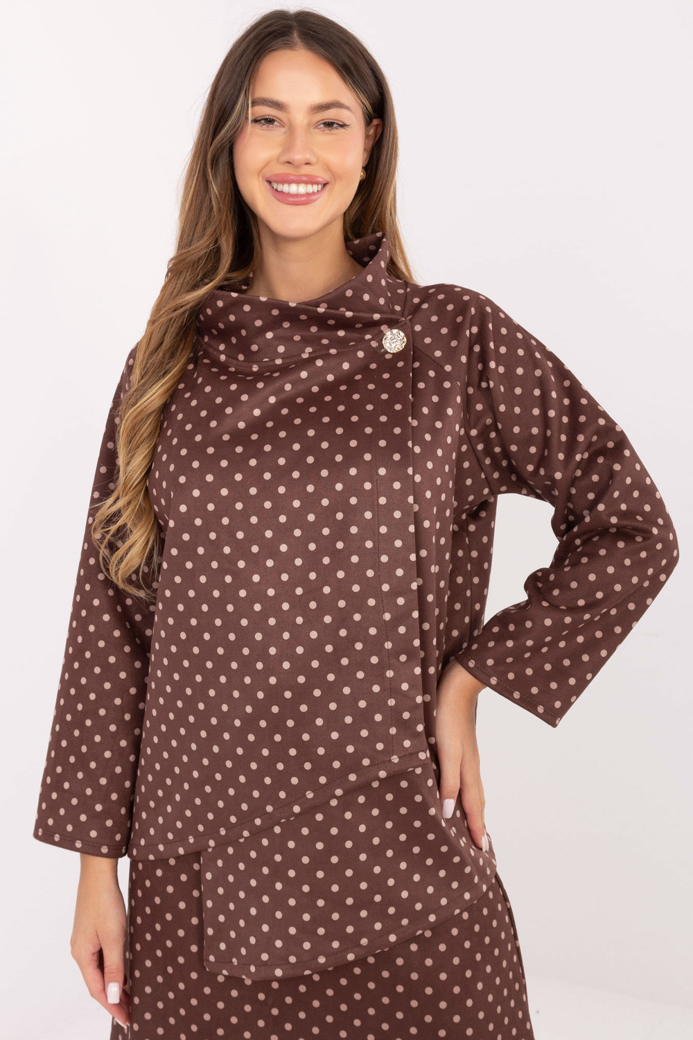Modelis dėvi vieno dydžio drabužį. Modelio išmatavimai: ūgis 173 cm, krūtinės apimtis 85 cm, liemens apimtis 62 cm, klubų apimtis 95 cm.