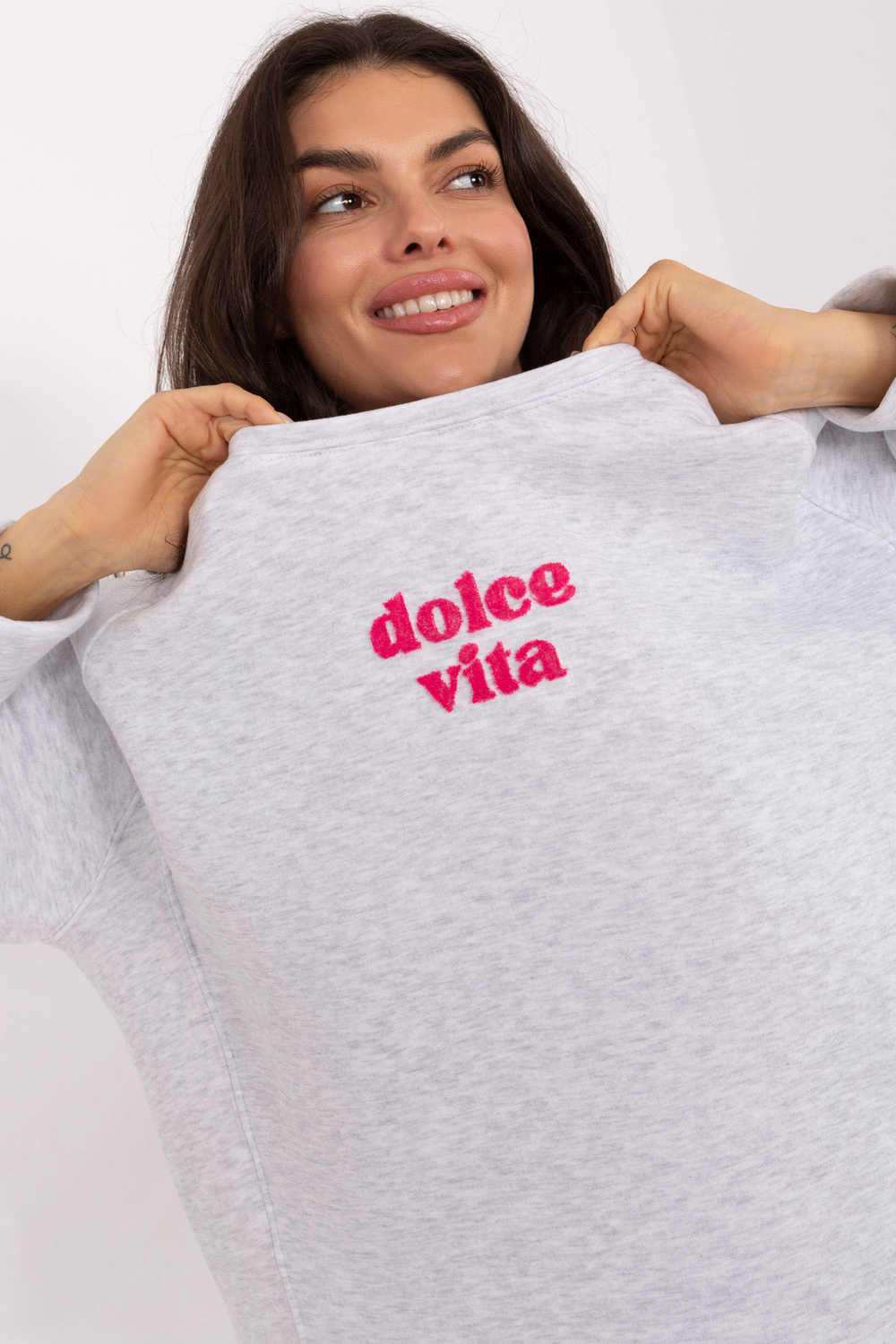 Modelis vilki one size dydžio drabužį. Modelio išmatavimai: ūgis 173 cm, krūtinė 85 cm, liemuo 62 cm, klubai 95 cm.