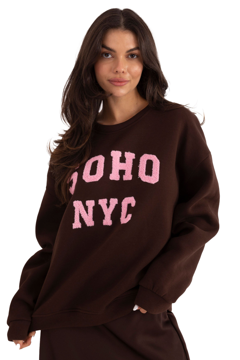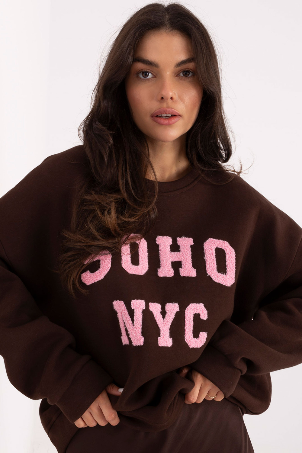 Modelis dėvi vieno dydžio drabužį. Modelio išmatavimai: ūgis 173 cm, krūtinė 85 cm, liemuo 62 cm, klubai 95 cm.