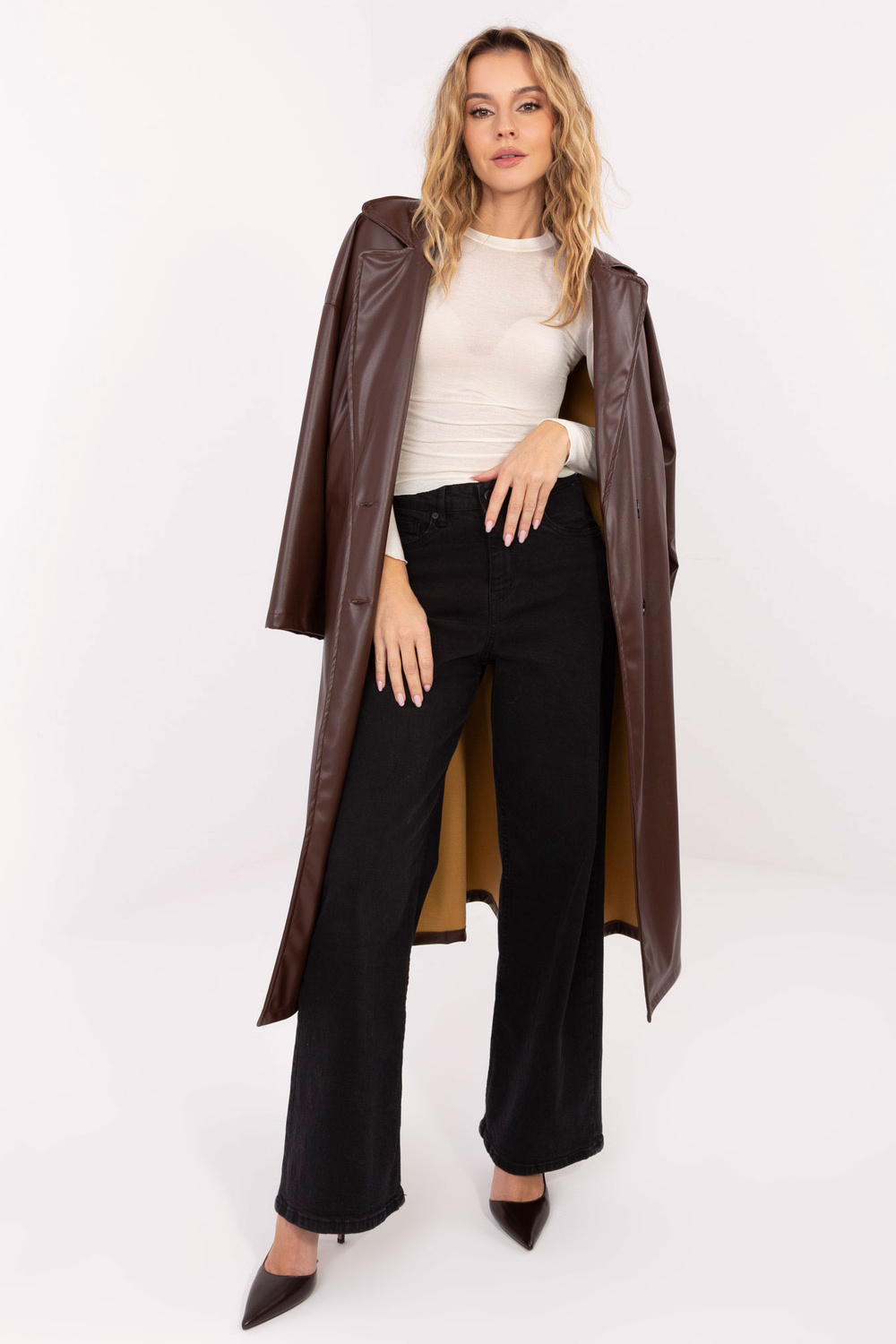 Modelis dėvi vieno dydžio drabužį. Modelio išmatavimai: ūgis 169 cm, krūtinė 88 cm, liemuo 68 cm, klubai 89 cm.