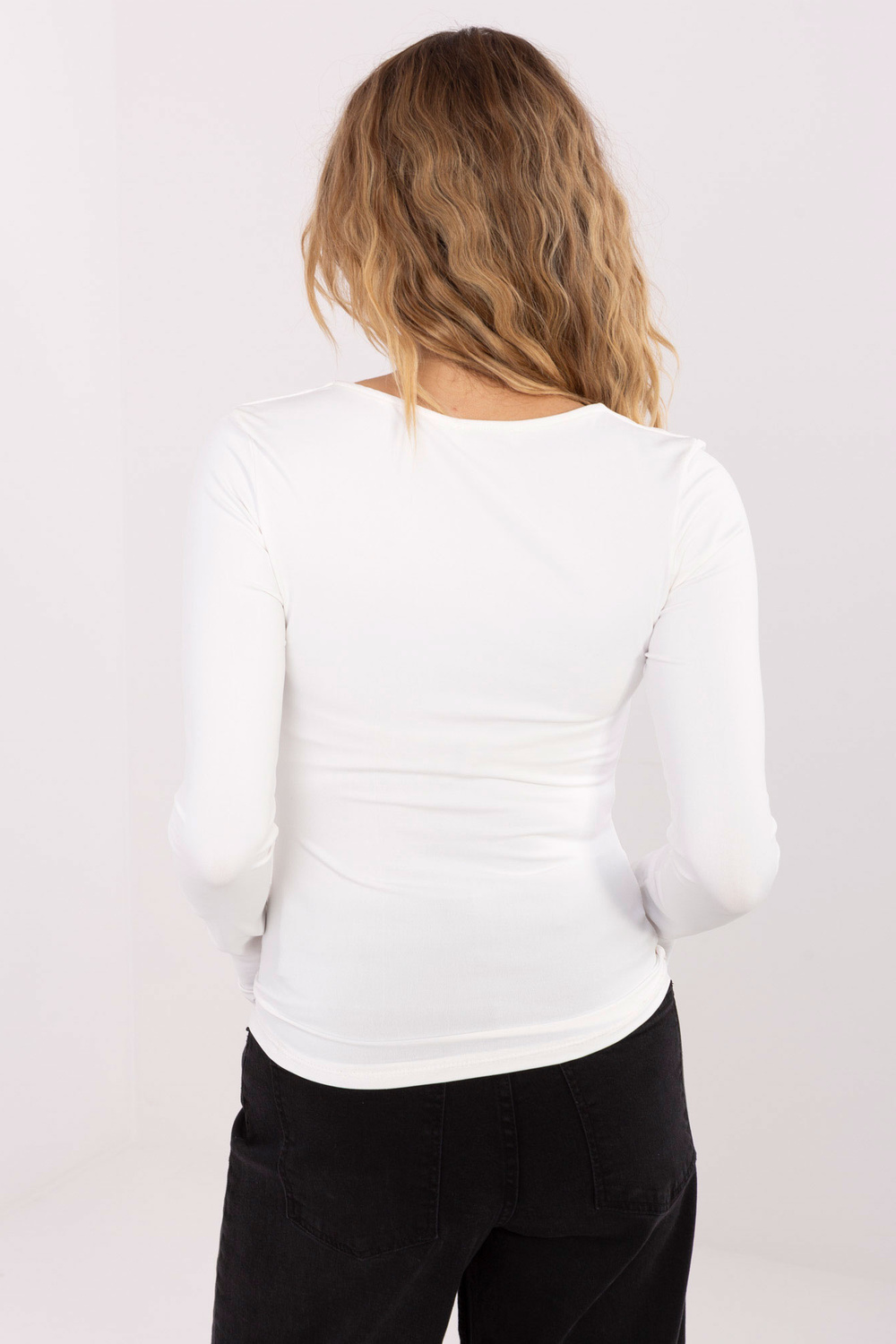 Modelis dėvi vieno dydžio drabužį. Modelio matmenys: ūgis 169 cm, krūtinė 88 cm, liemuo 68 cm, klubai 89 cm.
