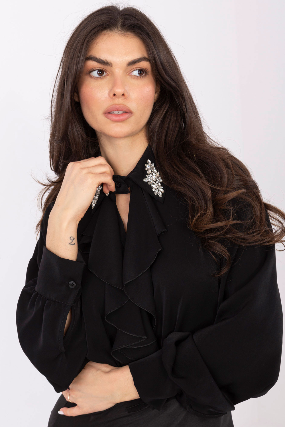 Modelis dėvi vieno dydžio drabužį. Modelio išmatavimai: ūgis 173 cm, krūtinė 85 cm, liemuo 62 cm, klubai 95 cm.