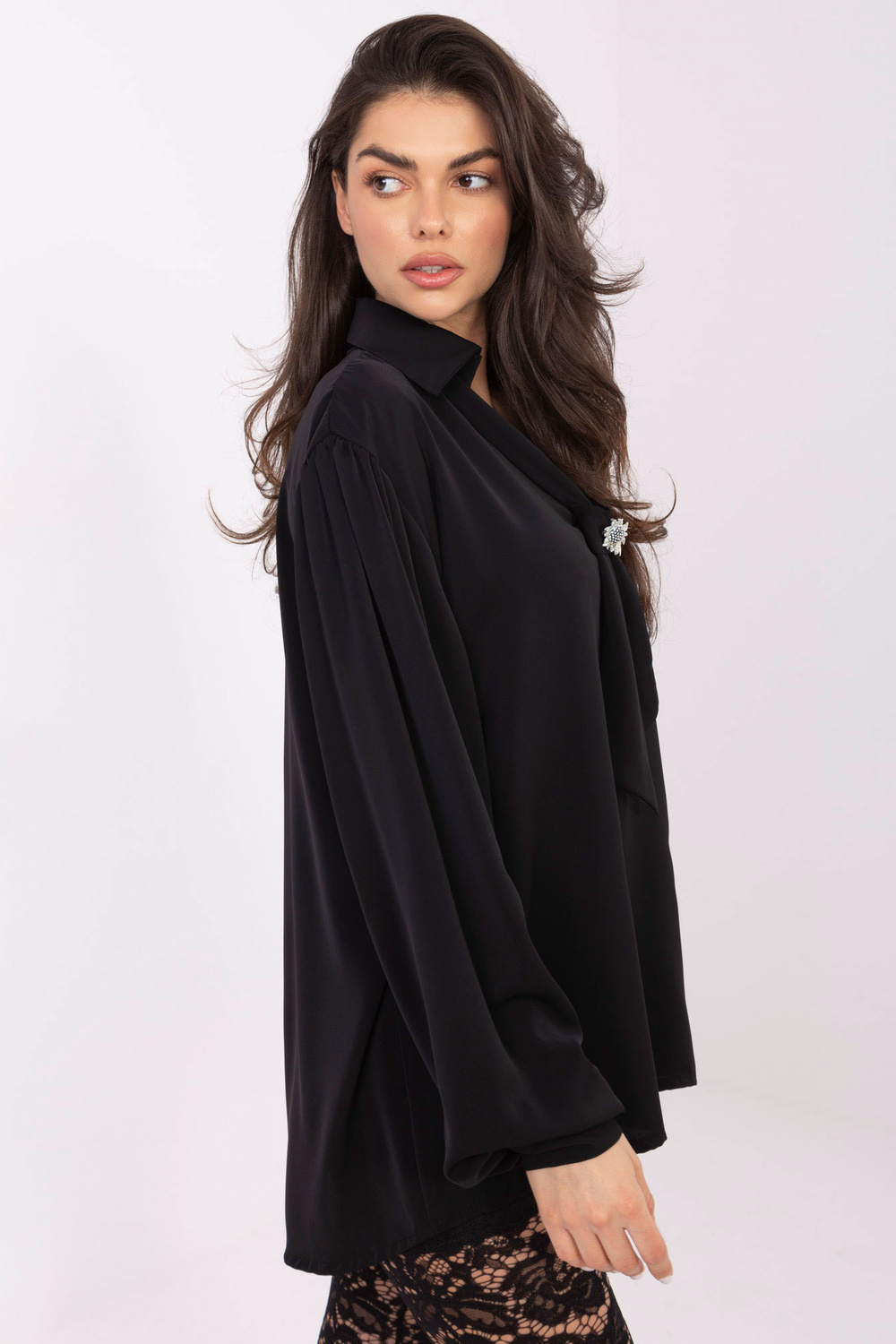Modelis dėvi vieno dydžio drabužį. Modelio išmatavimai: ūgis 173 cm, krūtinė 85 cm, liemuo 62 cm, klubai 95 cm.