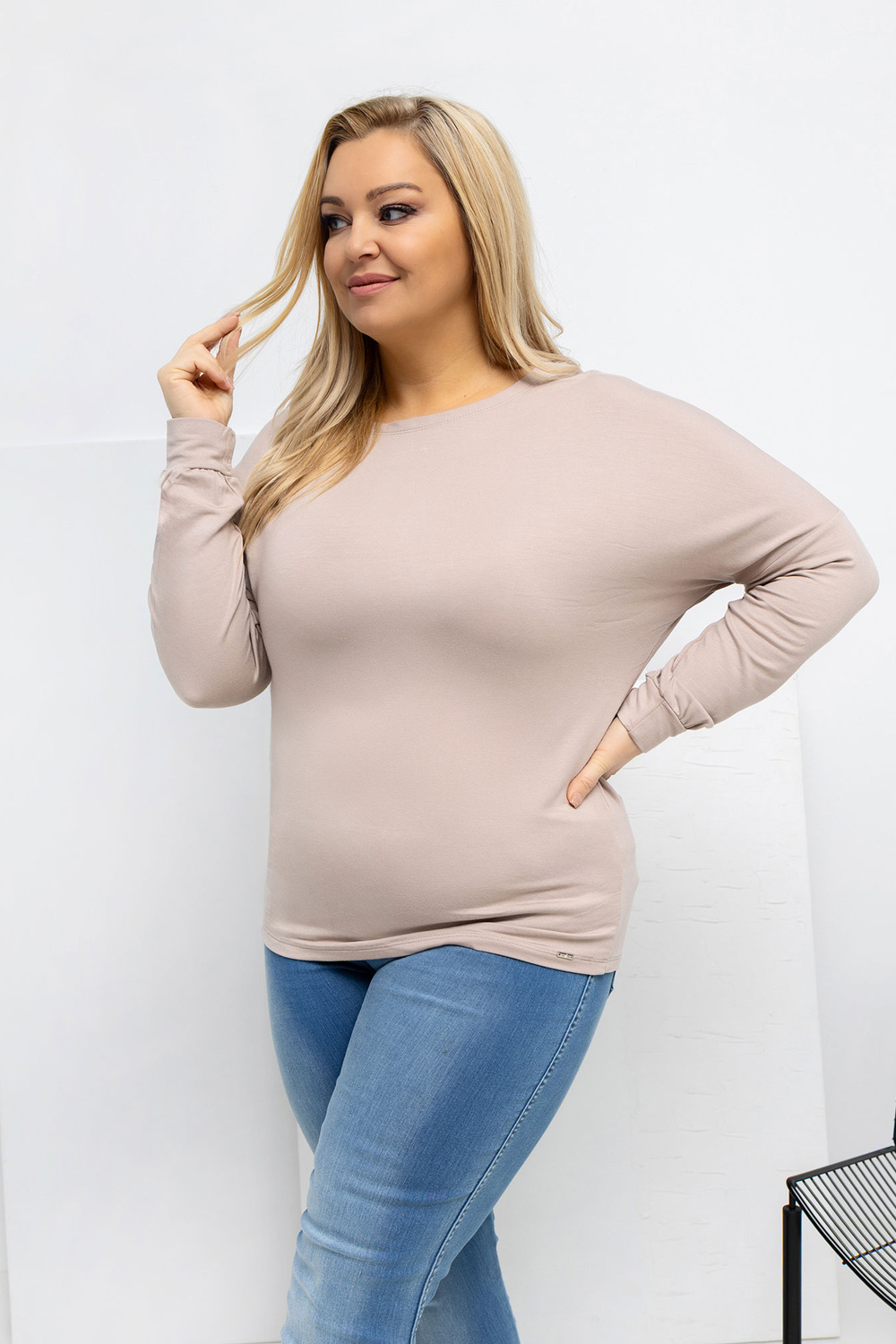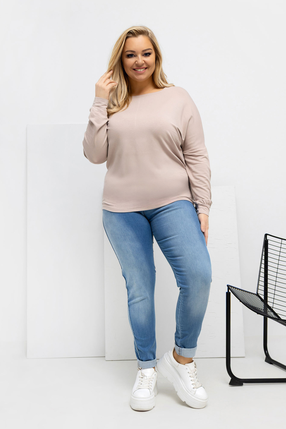 Modelis dėvi vieno dydžio drabužį. Modelio matmenys: ūgis 167 cm, biustas 118 cm, liemuo 90 cm, klubai 118 cm.
