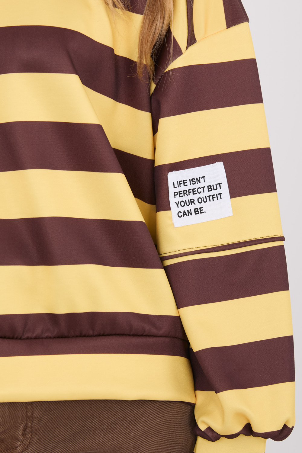 Modelis dėvi vieno dydžio drabužį. Modelio matmenys: ūgis 169 cm, krūtinė 88 cm, liemuo 68 cm, klubai 89 cm.