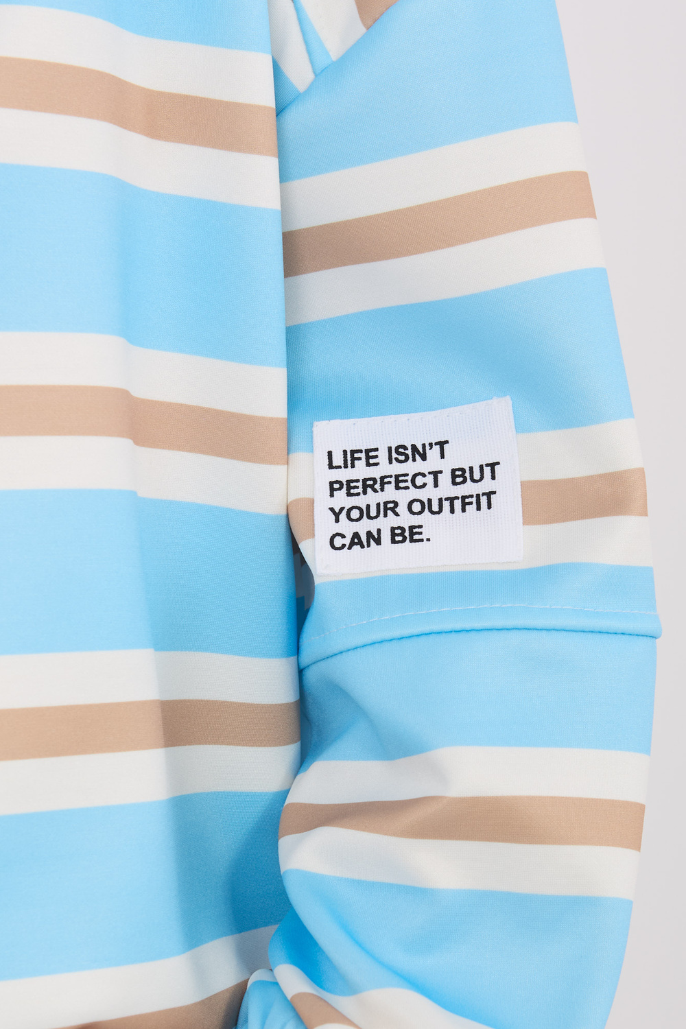 Modelis dėvi vieno dydžio drabužį. Modelio matmenys: ūgis 169 cm, krūtinė 88 cm, liemuo 68 cm, klubai 89 cm.