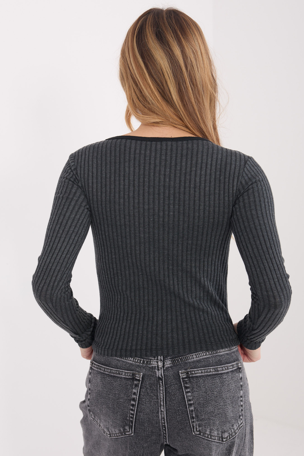 Modelis dėvi vieno dydžio drabužį. Modelio matmenys: ūgis 169 cm, krūtinė 88 cm, liemuo 68 cm, klubai 89 cm .