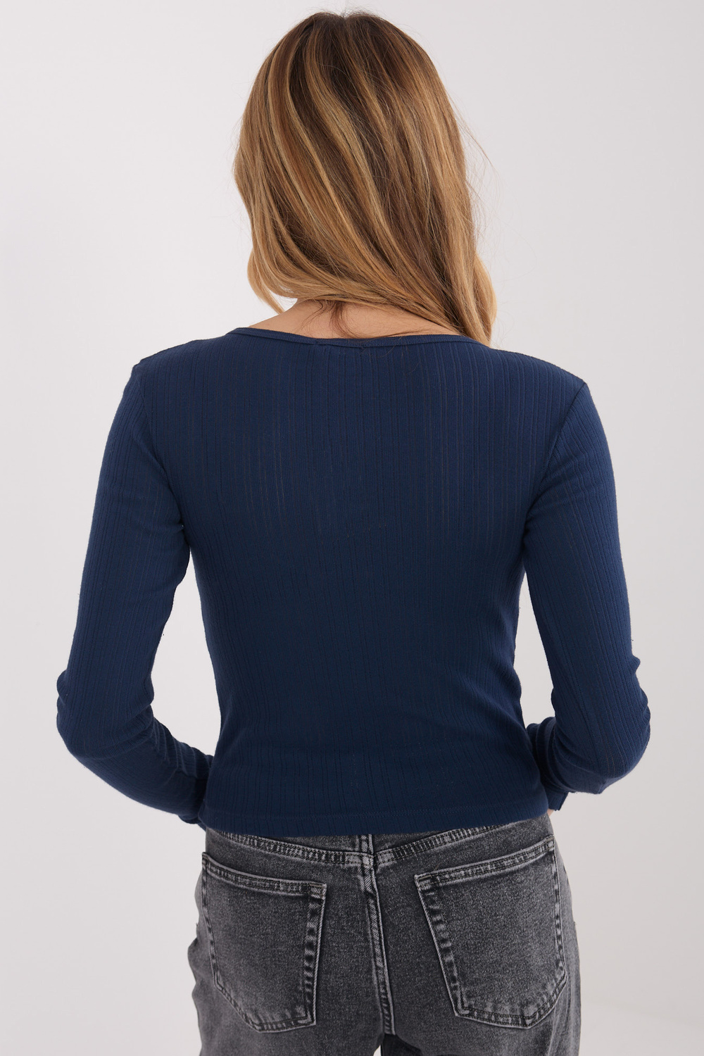 Modelis dėvi vieno dydžio drabužį. Modelio matmenys: ūgis 169 cm, krūtinė 88 cm, liemuo 68 cm, klubai 89 cm .