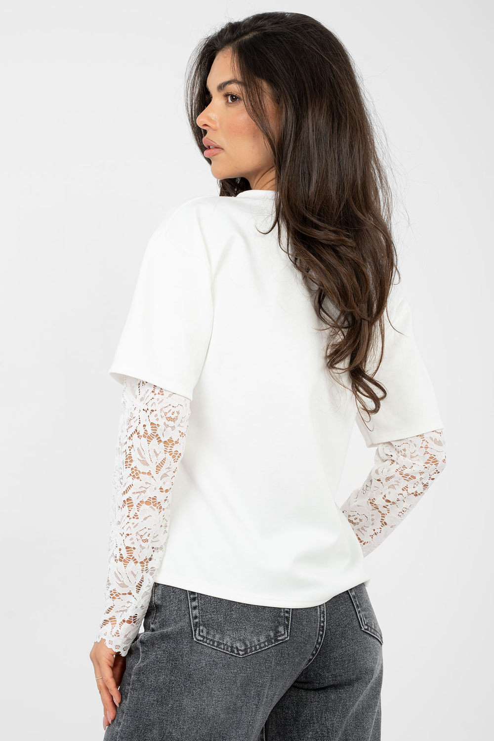Modelis dėvi vieno dydžio drabužį. Modelio matmenys: ūgis 173 cm, krūtinė 85 cm, liemuo 62 cm, klubai 95 cm.