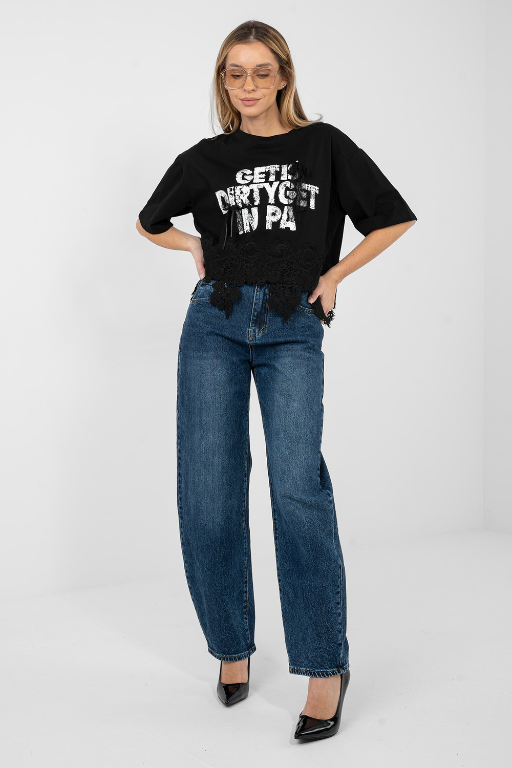 Modelis dėvi vieno dydžio drabužį. Modelio išmatavimai: ūgis 169 cm, krūtinė 88 cm, liemuo 68 cm, klubai 89 cm .