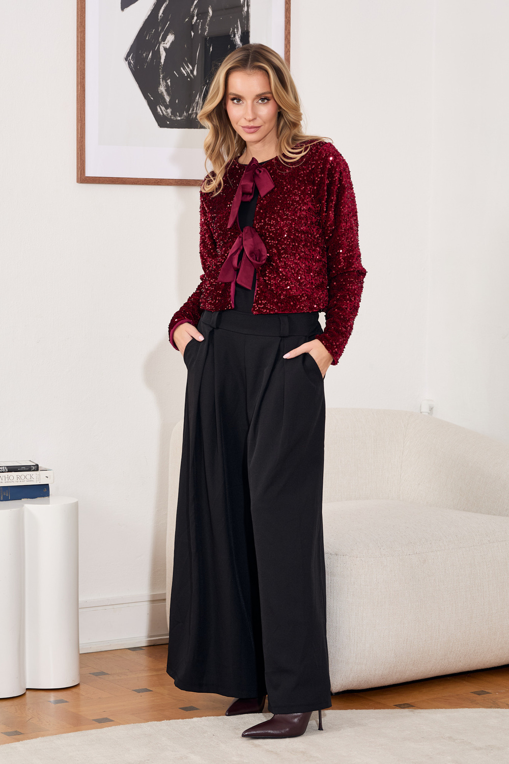 Modelis dėvi vieno dydžio drabužį. Modelio išmatavimai: ūgis 176 cm, krūtinė 90 cm, liemuo 62 cm, klubai 94 cm.
