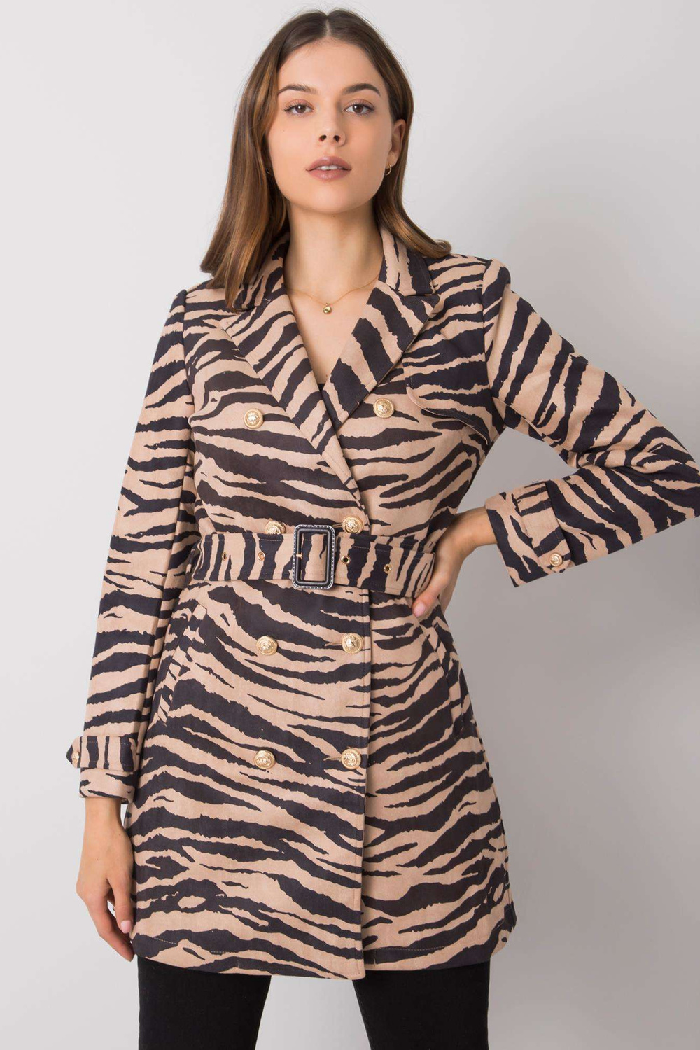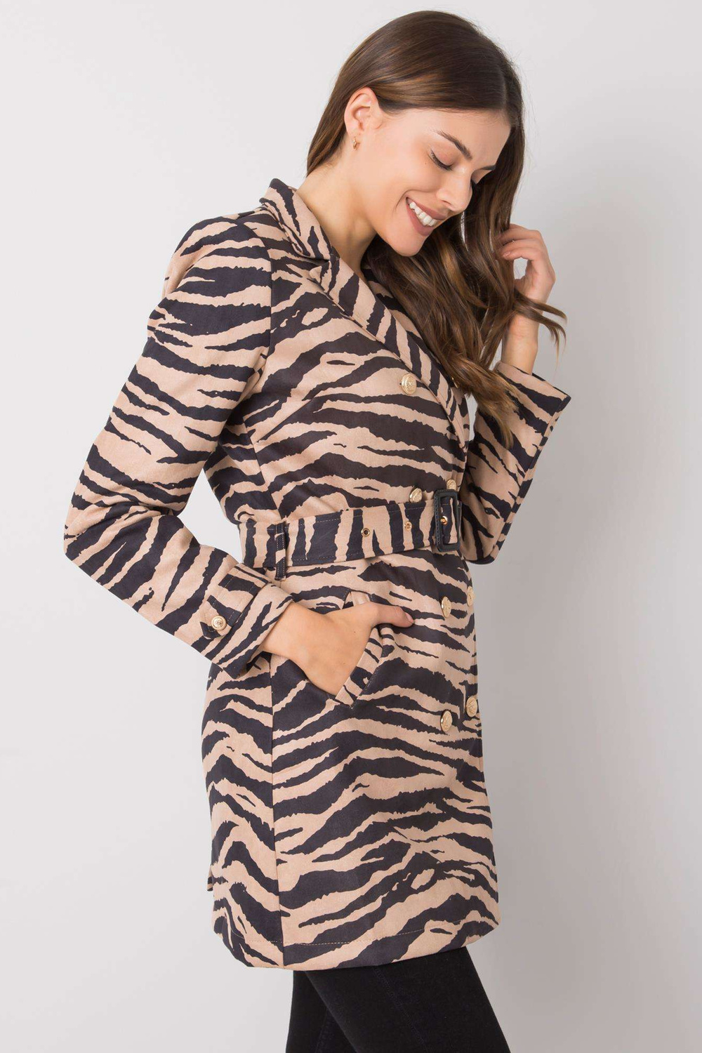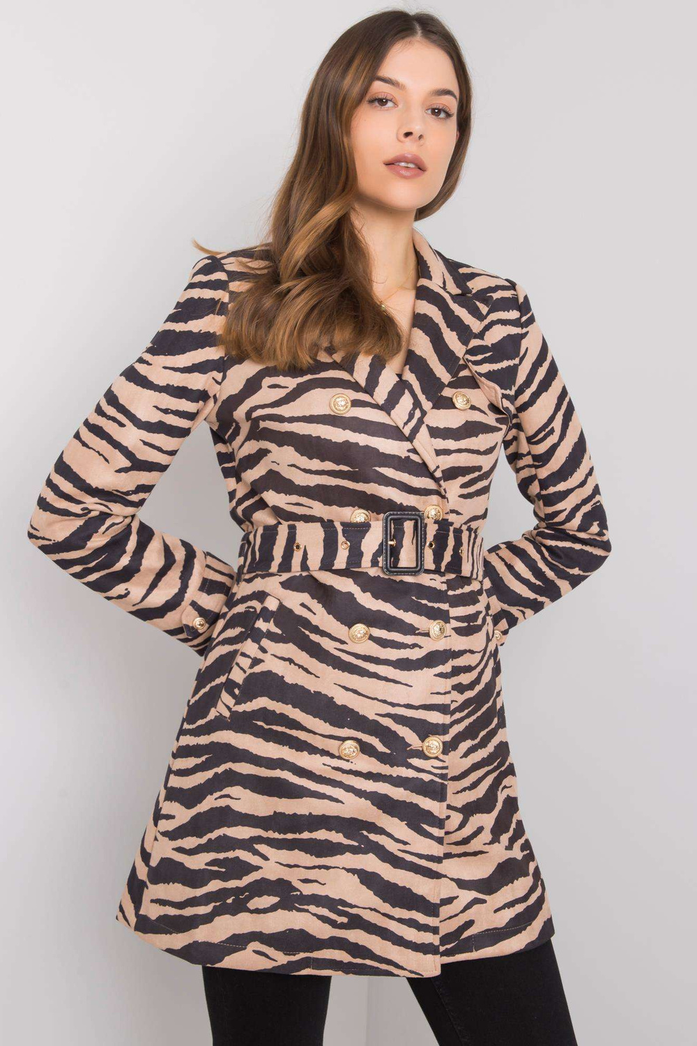 Smėlio ir juodos spalvos Misūrio moteriškas paltas< font style="vertical-align: inherit;"> .