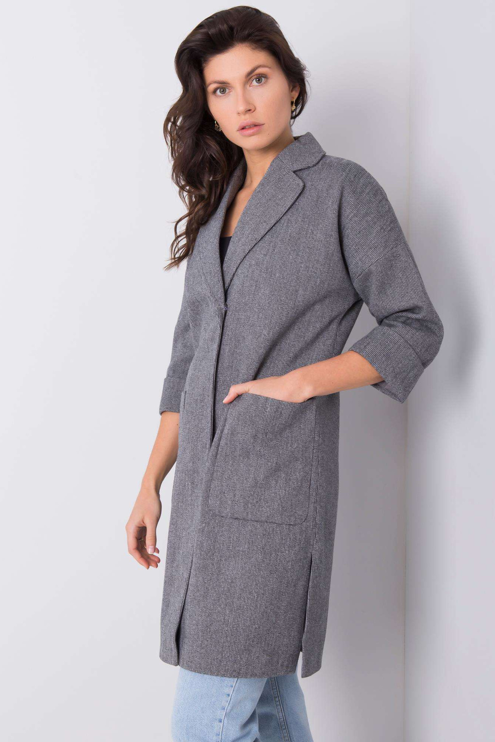 SizeS palto matmenys išmatuoti plokščiai: plotis pažastyje - 50 cm, bendras ilgis - 90 cm, rankovių ilgis - 46 cm
