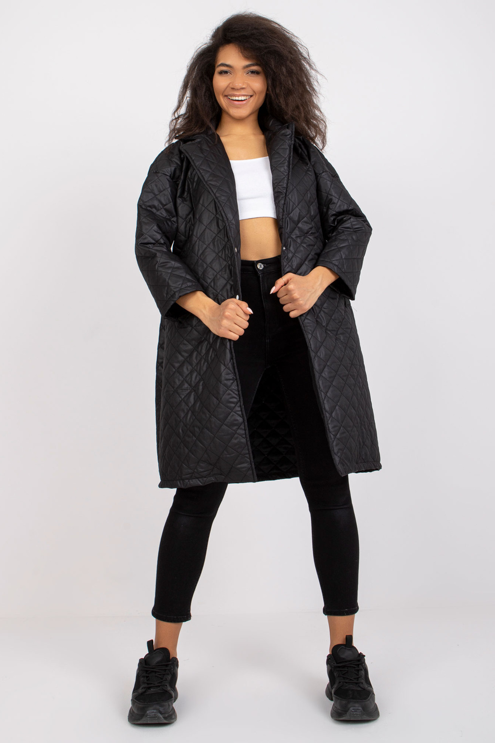 Juodas paltas su skiautiniu Sofija. aksesuarai: kišenės Medžiagos sudėtis: 100% poliesterio skalbimo būdas: skalbimo mašina 30°C Gaminio kodas: EM-PL-655.91 dominuojantis raštas: be rašto Stilius: kasdienis Proga: kasdienis, miestui Modelis dėvi S dydį