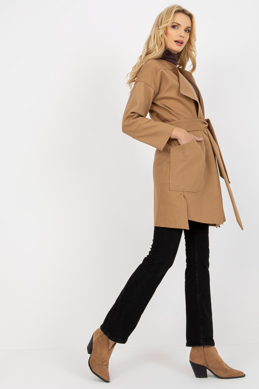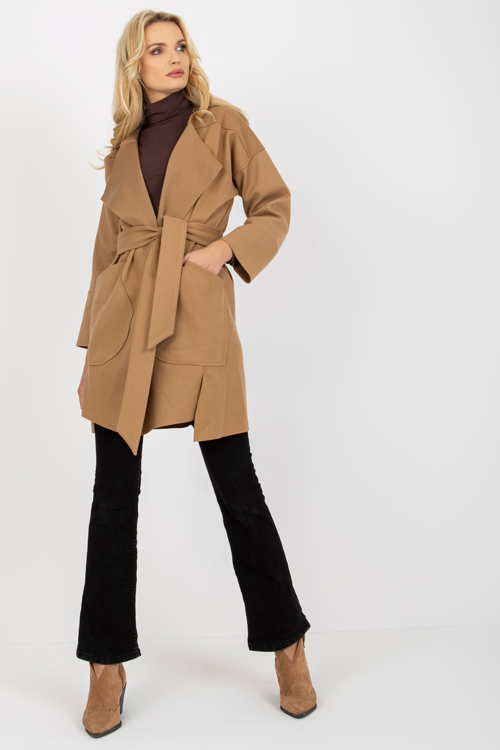 Kamelfarbener Dünner Mantel su OCH BELLA Bindung.