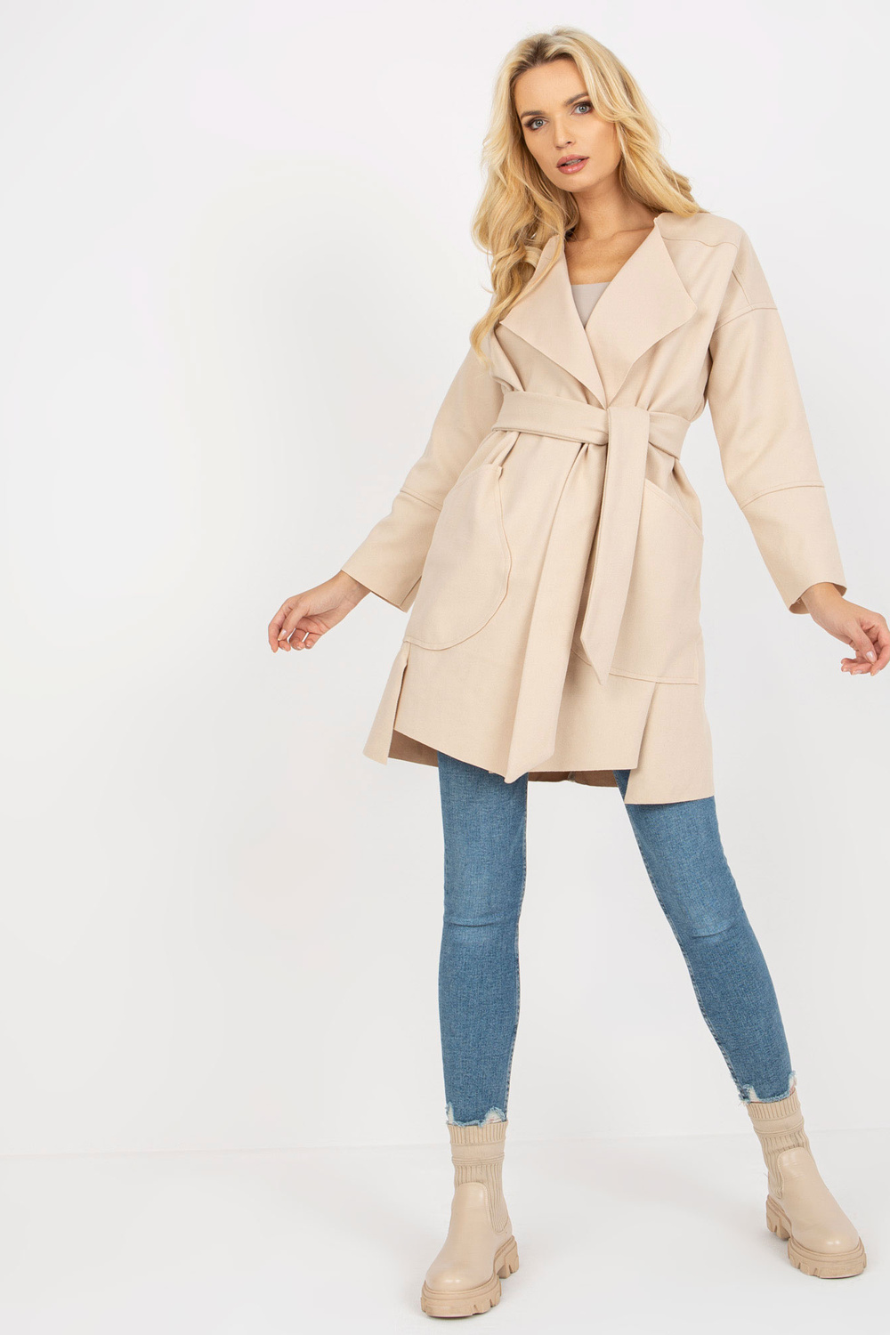 Hellbeiger dünner Mantel su Bindegürtel OCH BELLA.