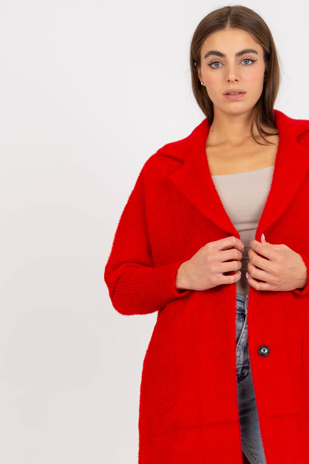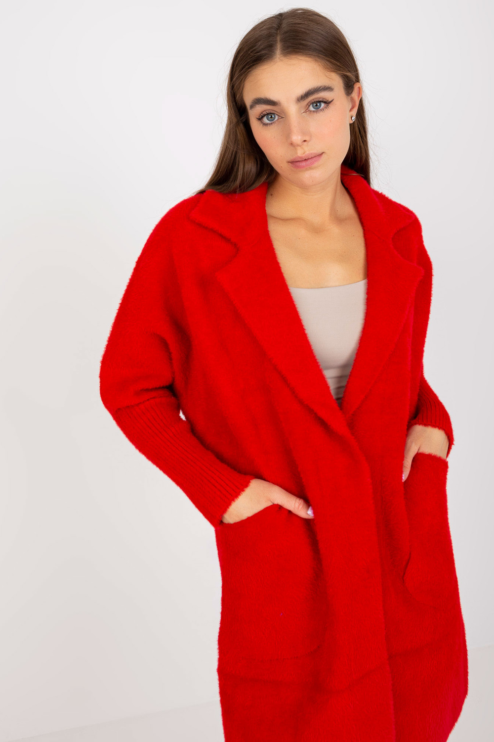 Raudonas moteriškas alpakų paltas su Eveline vilna.