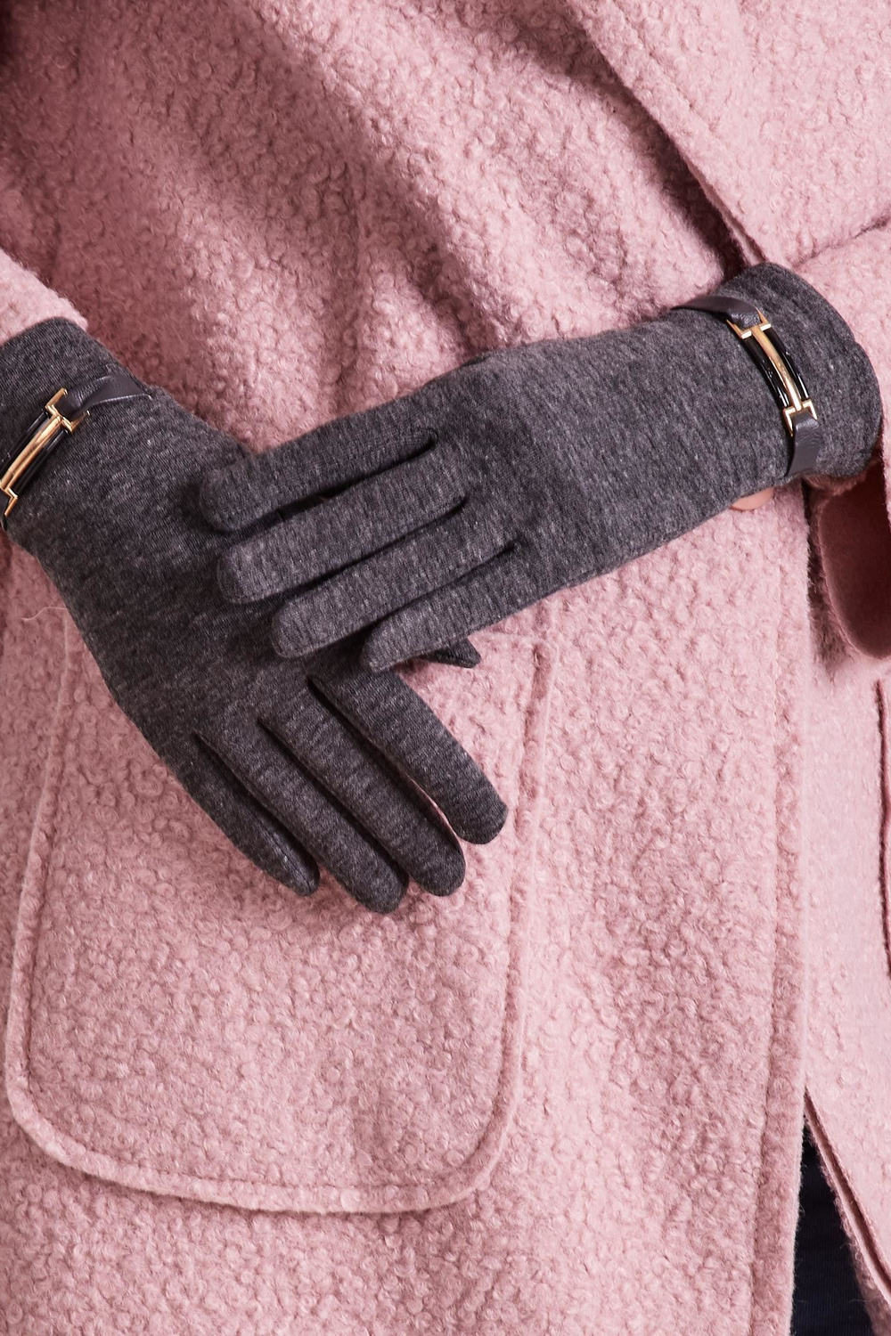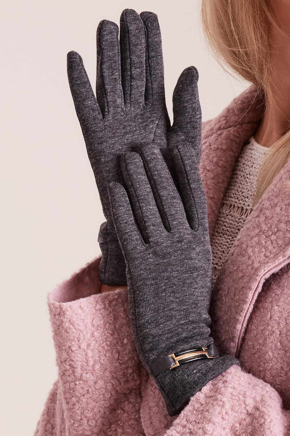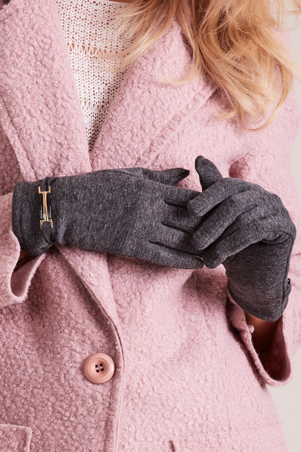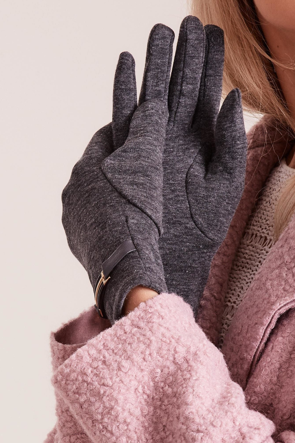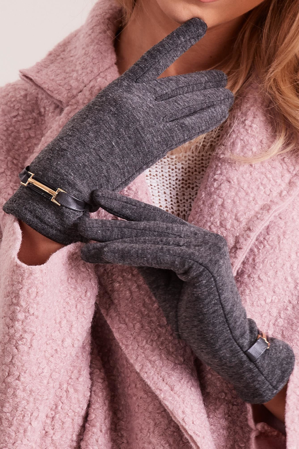 Tamsiai pilkos moteriškos pirštinės su sagtimi
