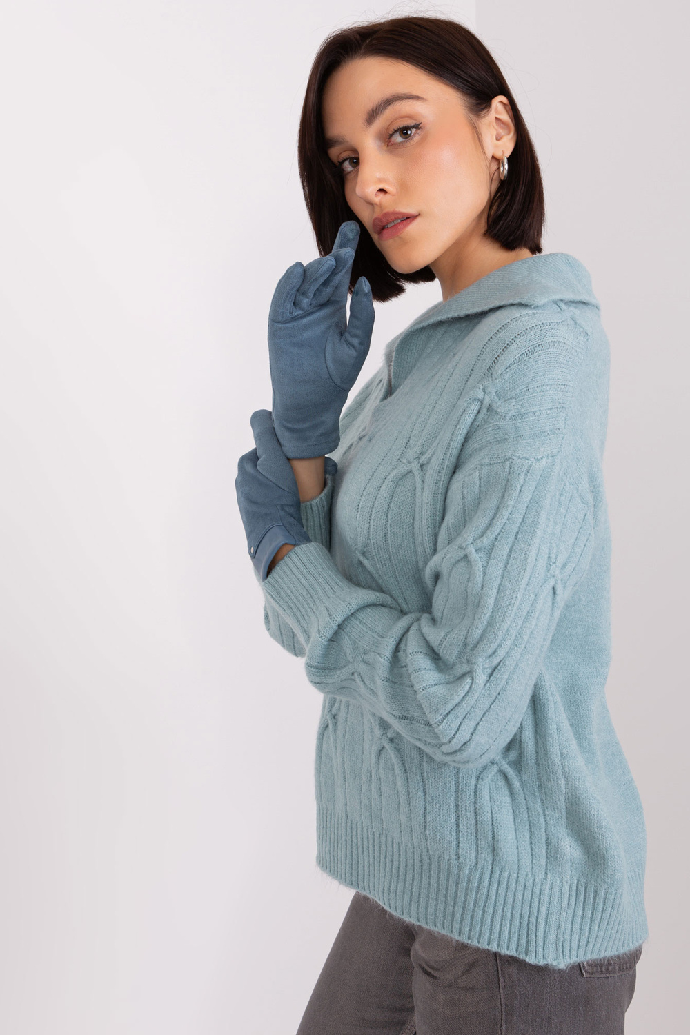Purvinos mėlynos pirštinės su ekologiškos odos įdėklais.
