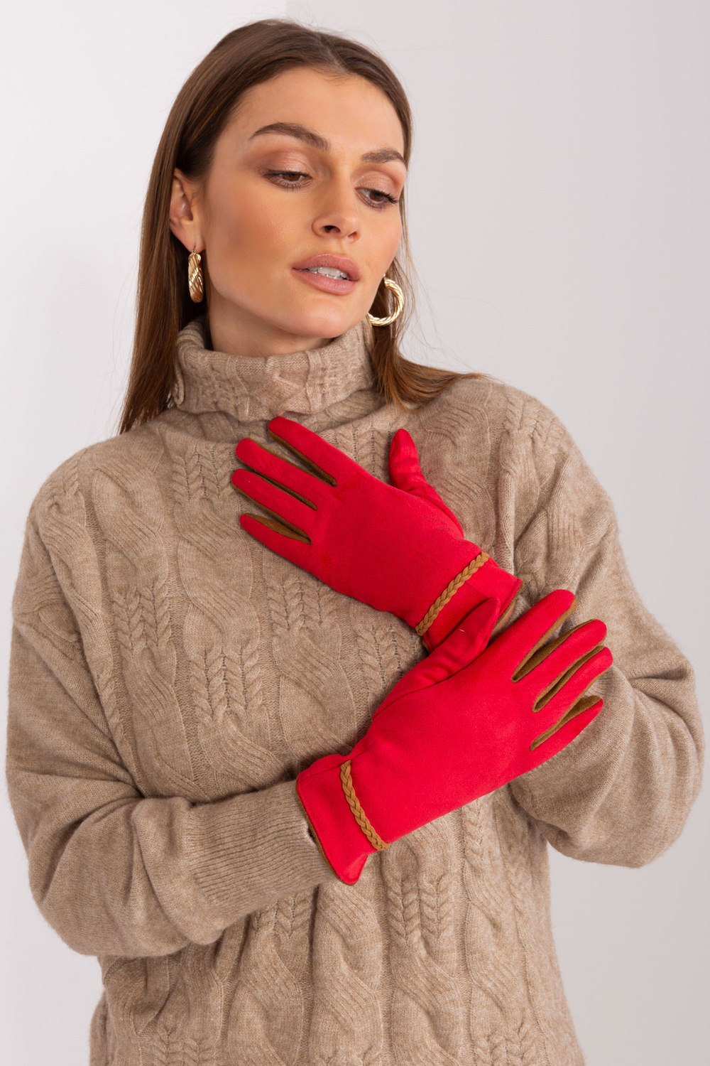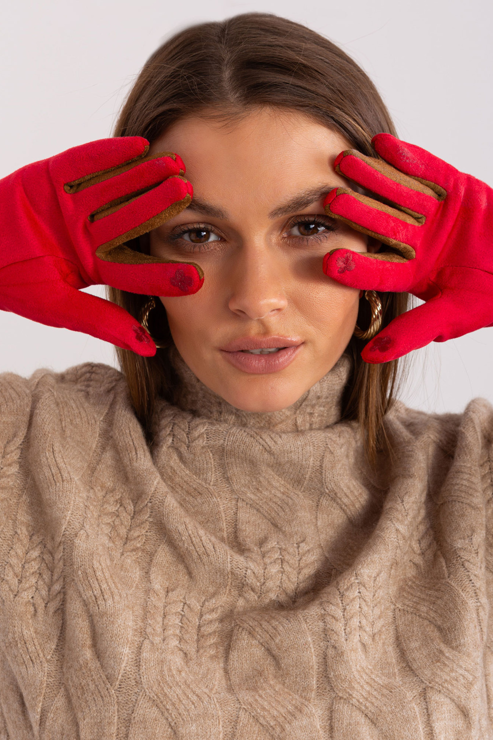 Raudonos liečiamos pirštinės su lygiu raštu .