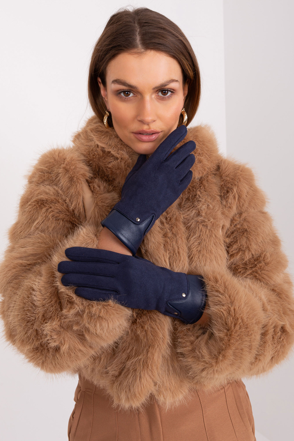 Tamsiai mėlynos moteriškos pirštinės .
