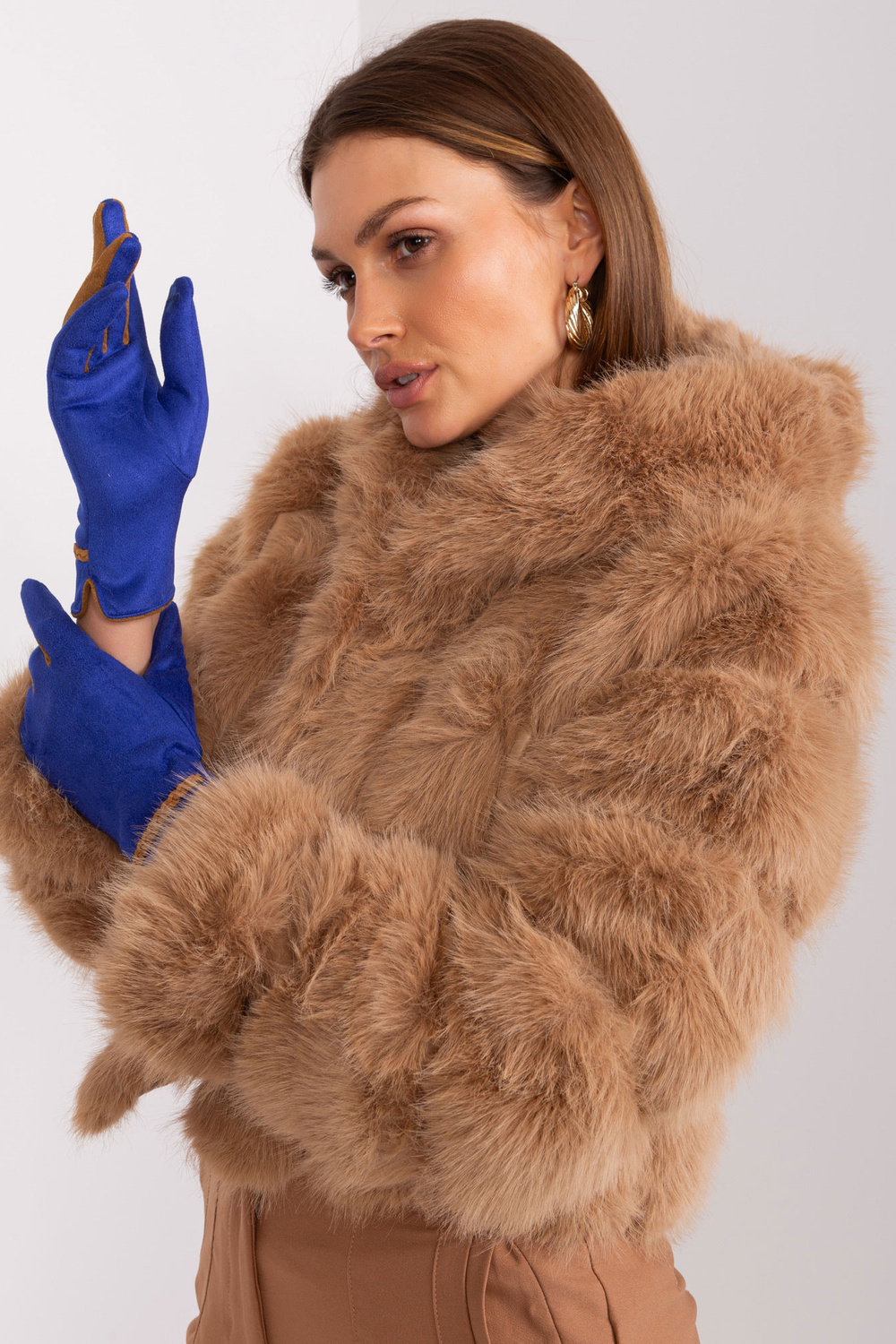 Kobalto mėlynos pirštinės su dekoratyviniu dirželiu .