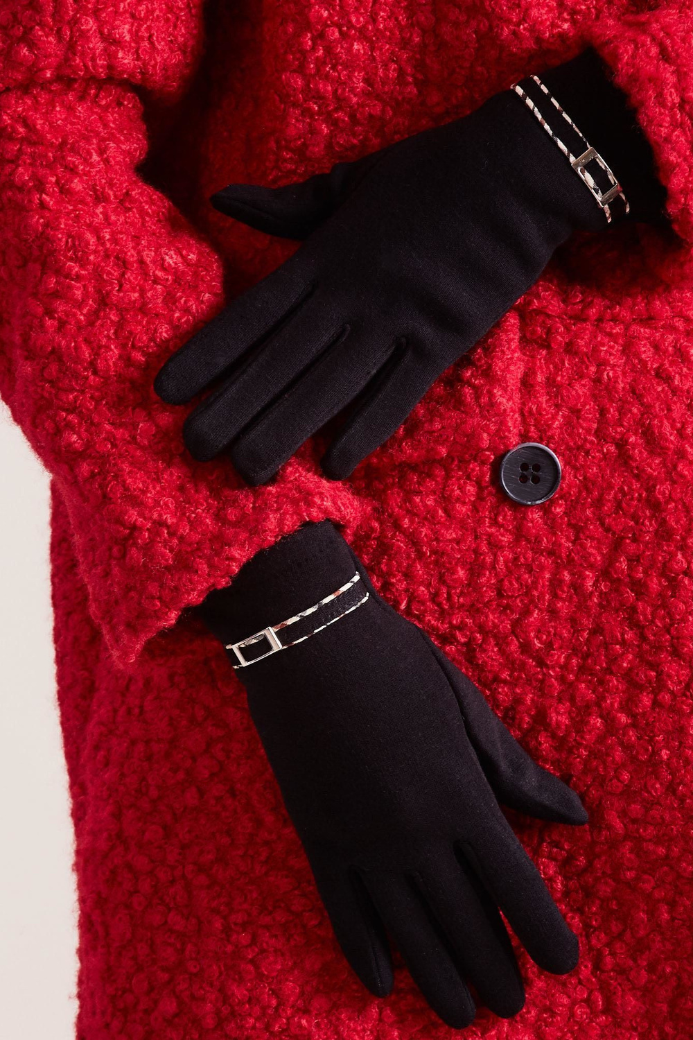 Moteriškos pirštinės su juodos spalvos sagtimi