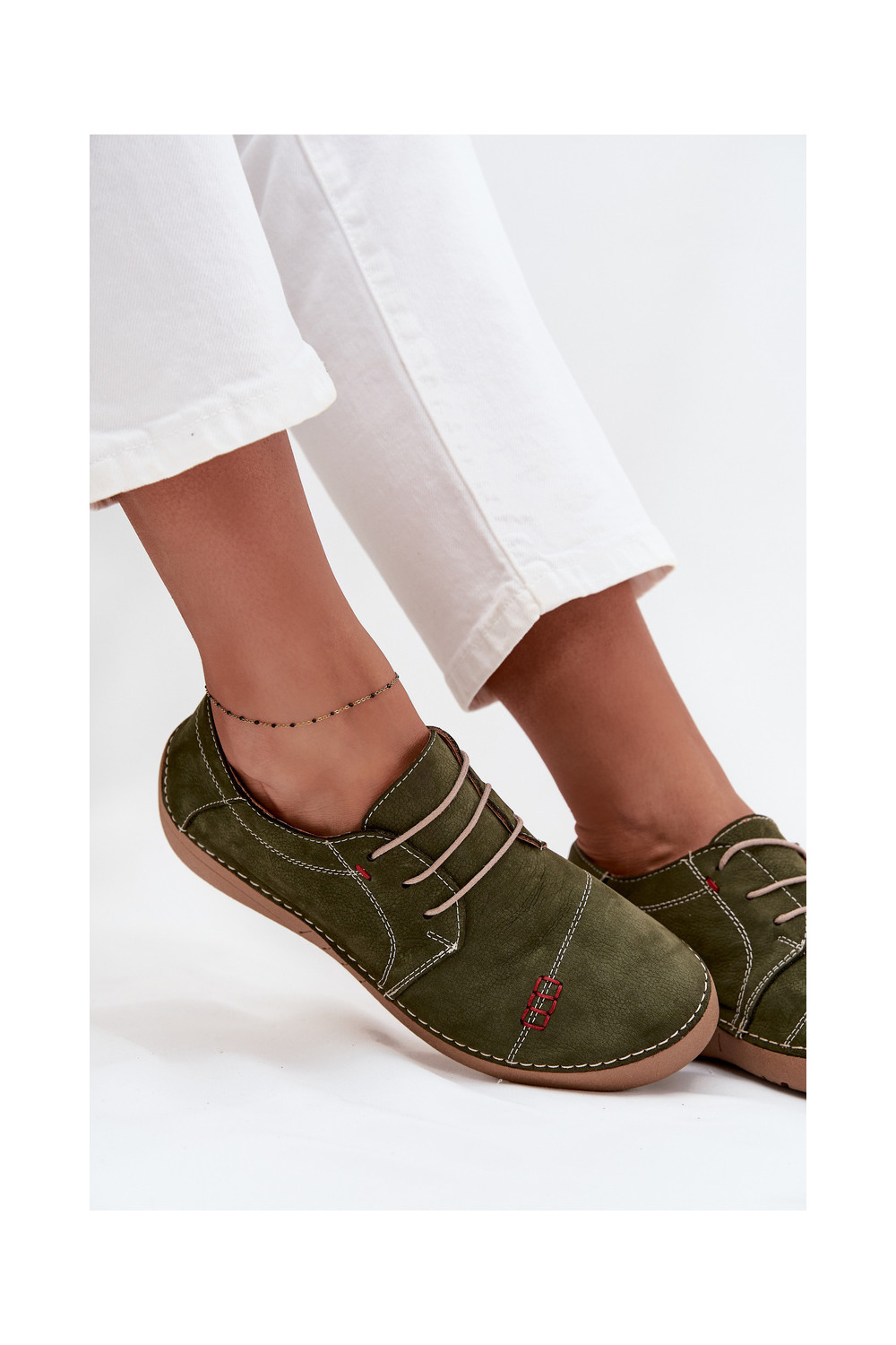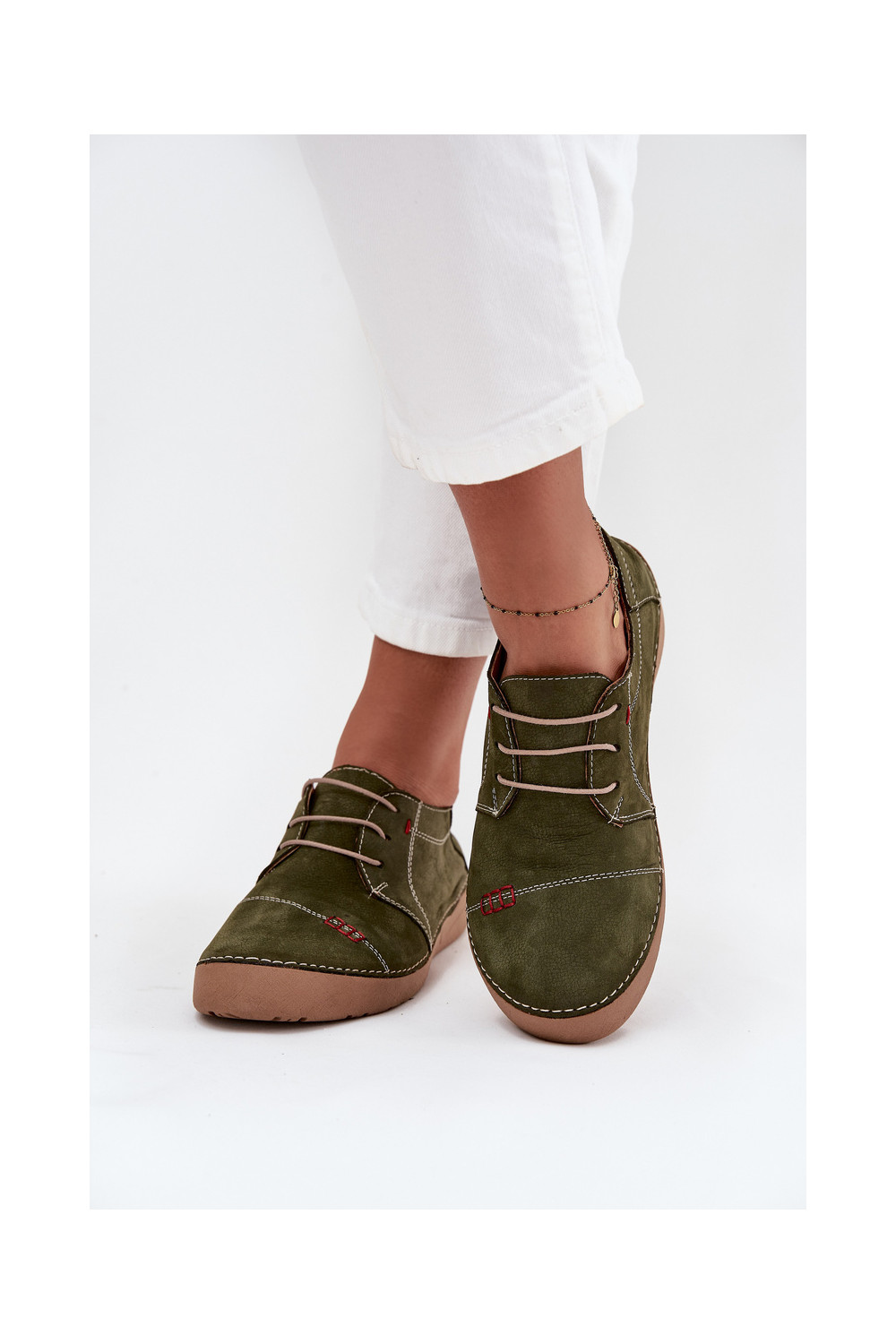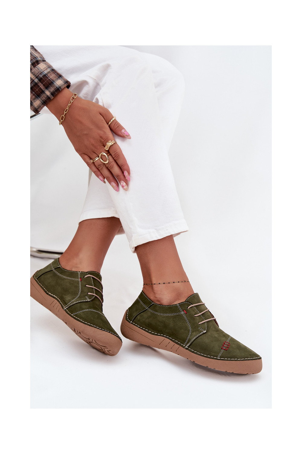 Žalios spalvos odiniai moteriški batai su siūlėmis „Artiker 57C2112"