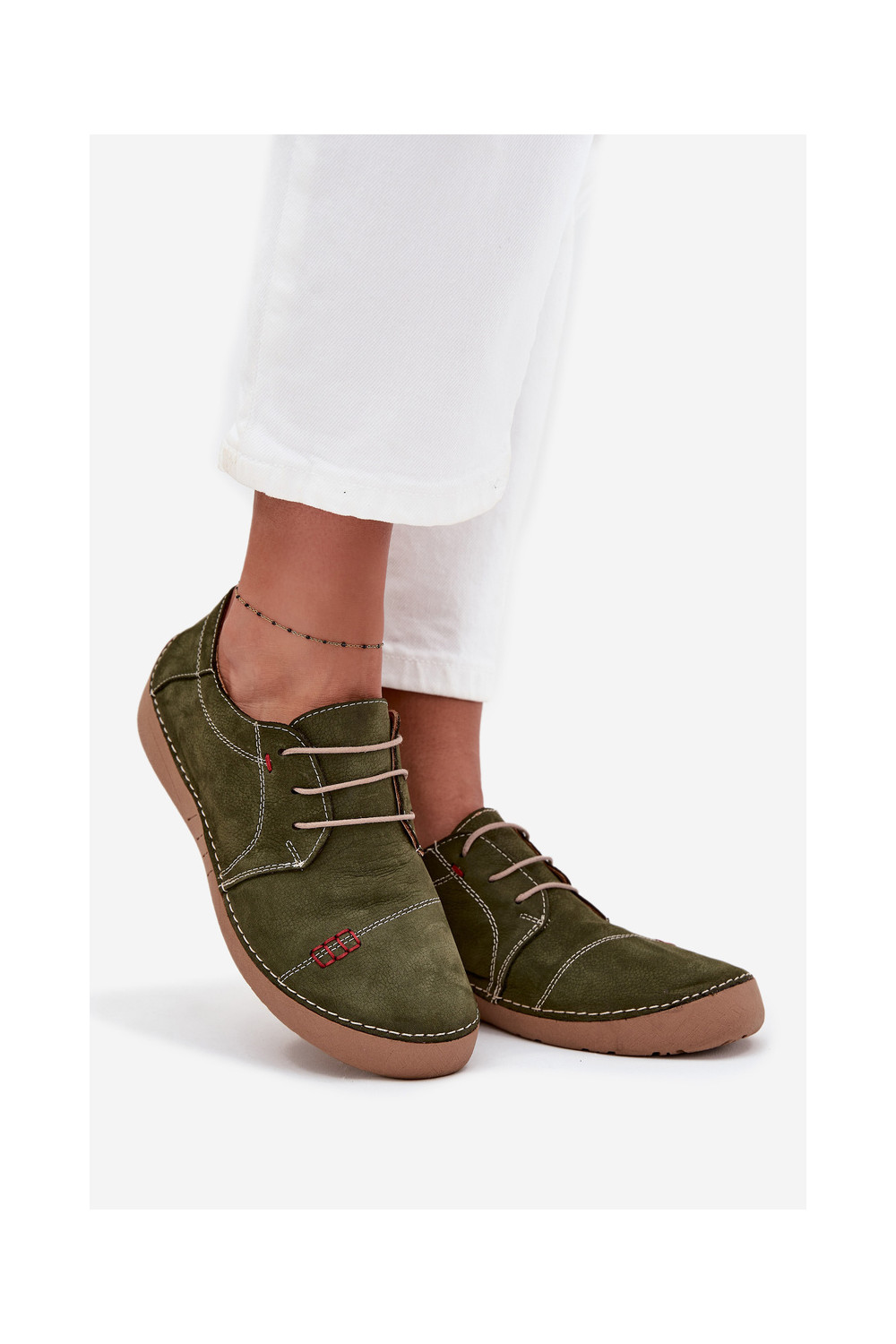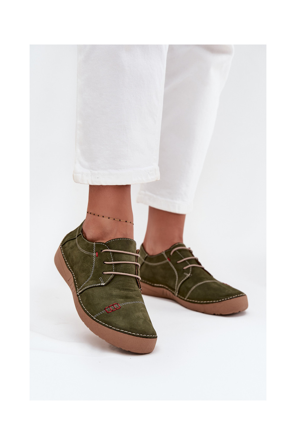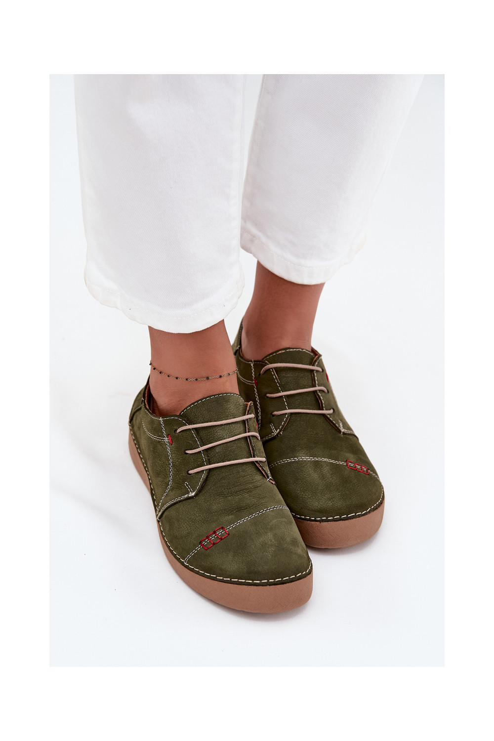 Žalios spalvos odiniai moteriški batai su siūlėmis „Artiker 57C2112"