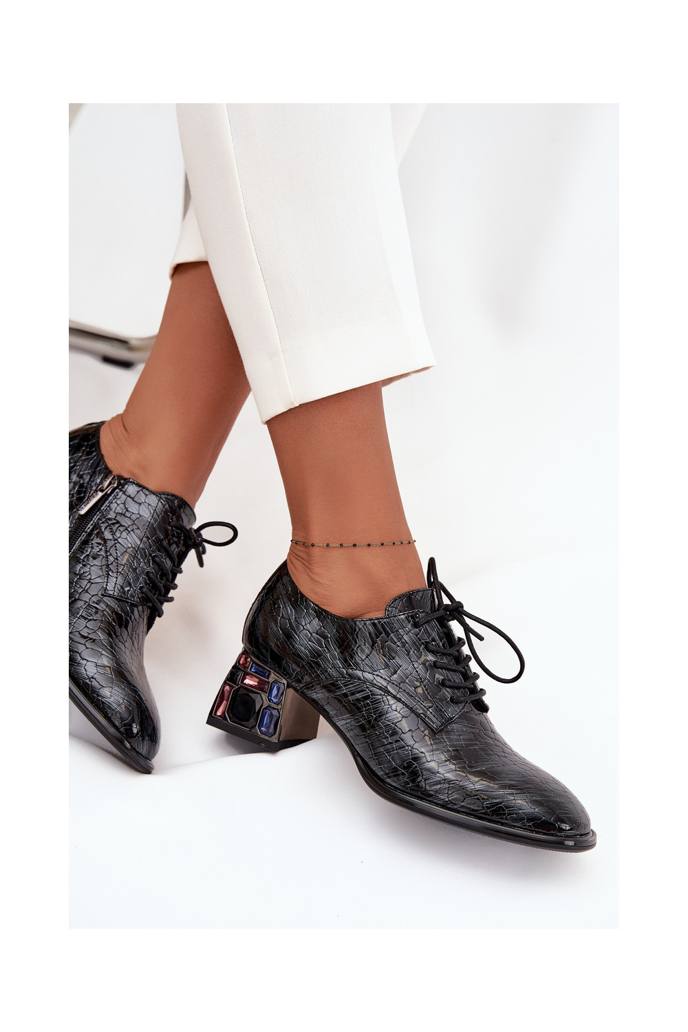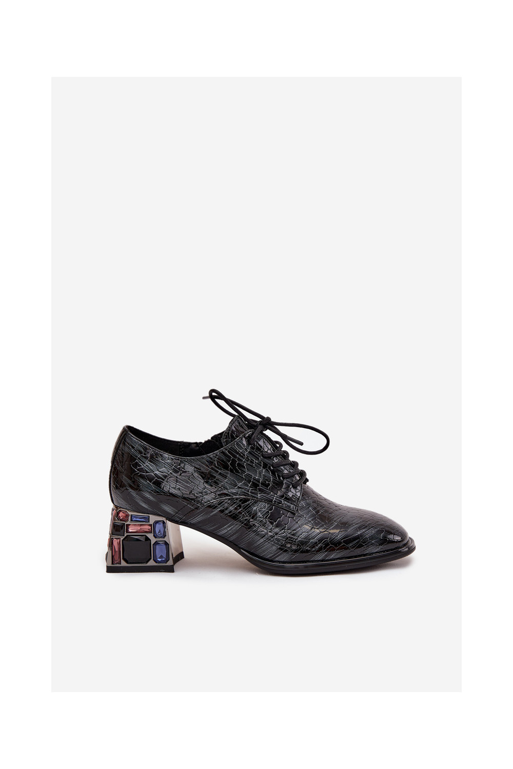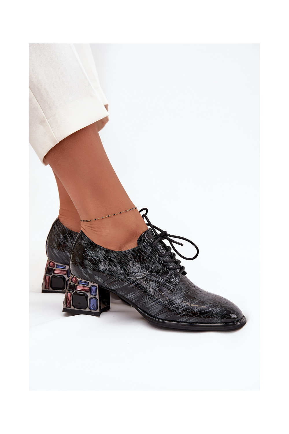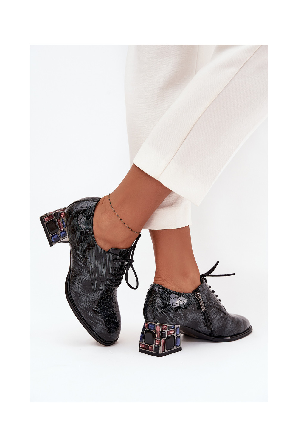 Lakuoti natūralios odos moteriški pusbačiai su kulniukais ir spindinčiomis akutėmis Artiker 57C0072 pilkos spalvos