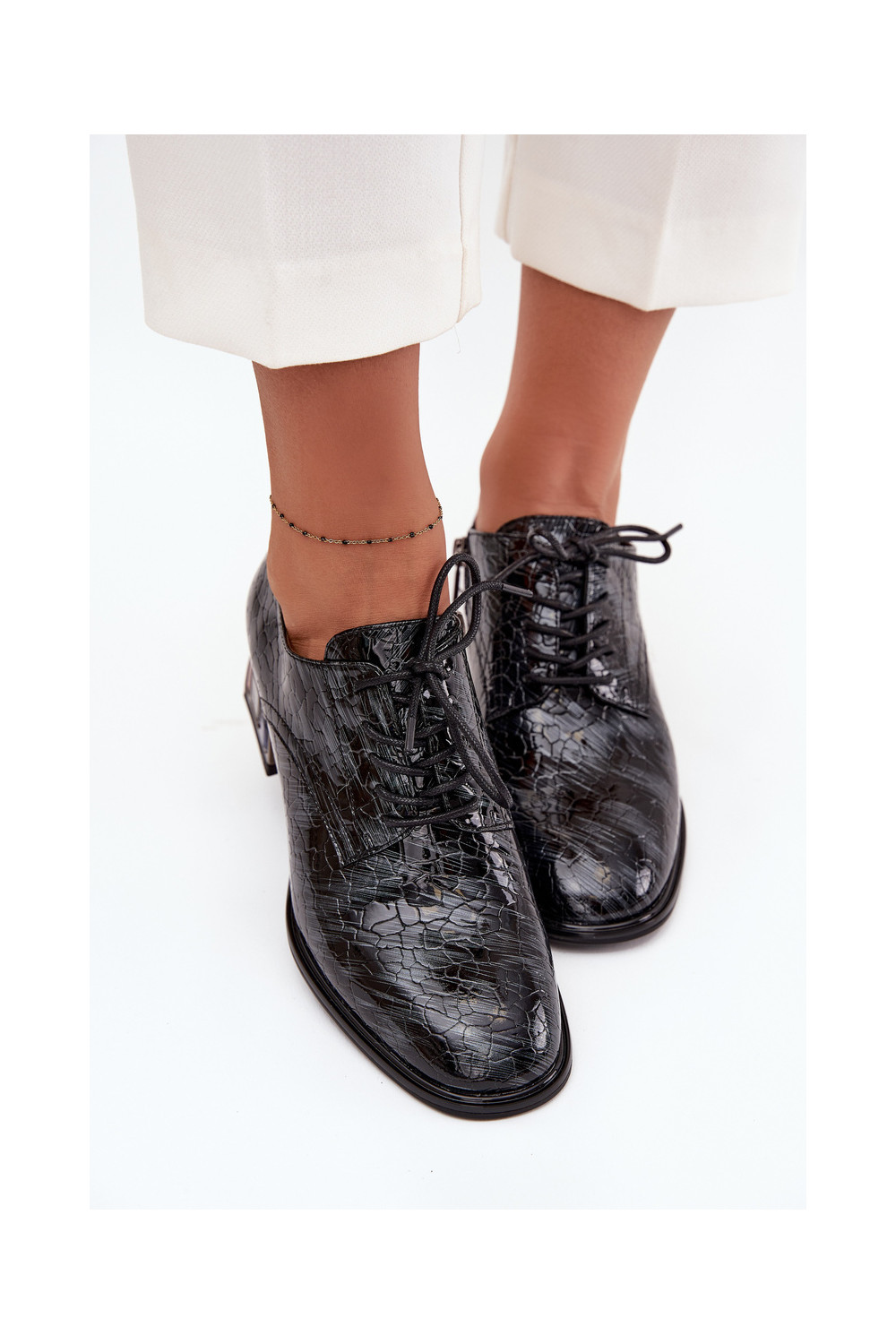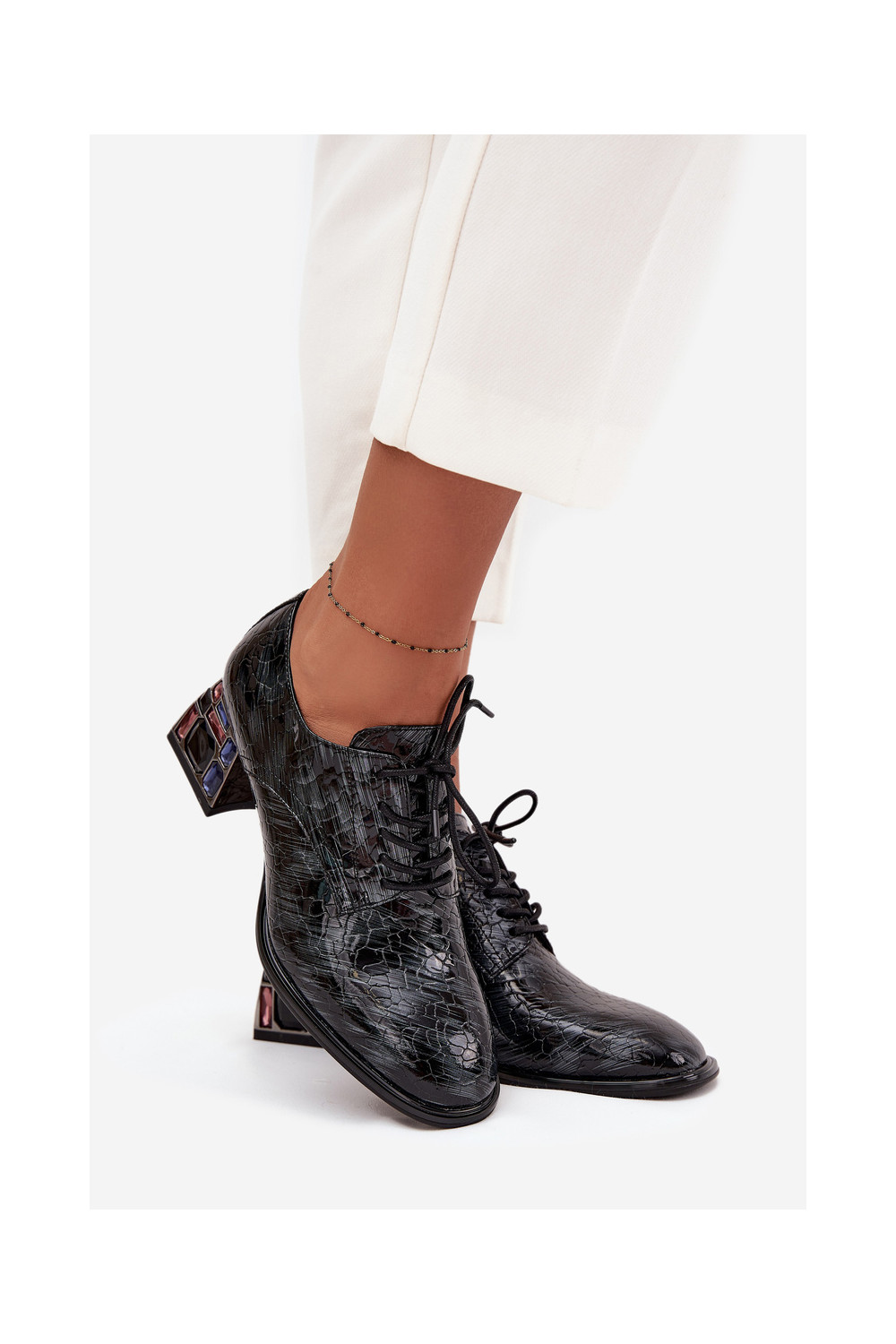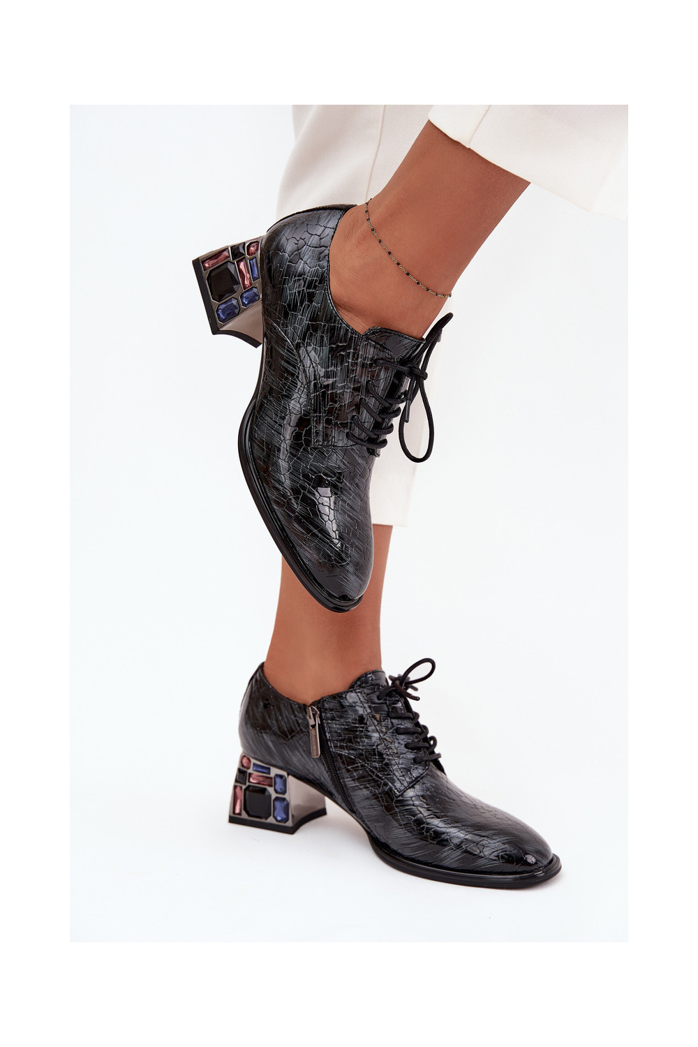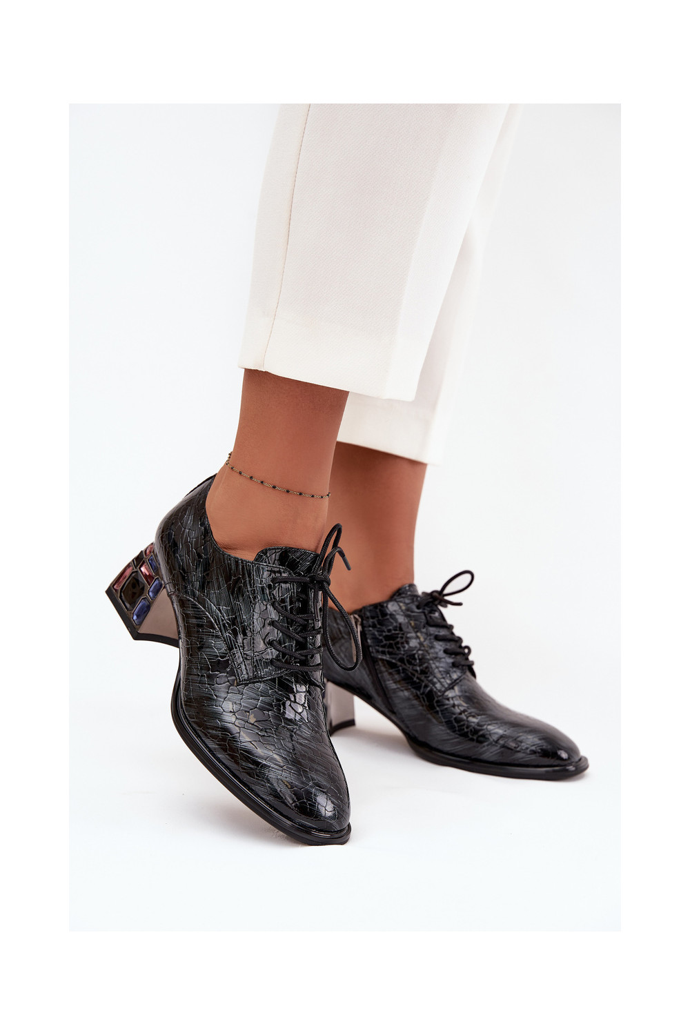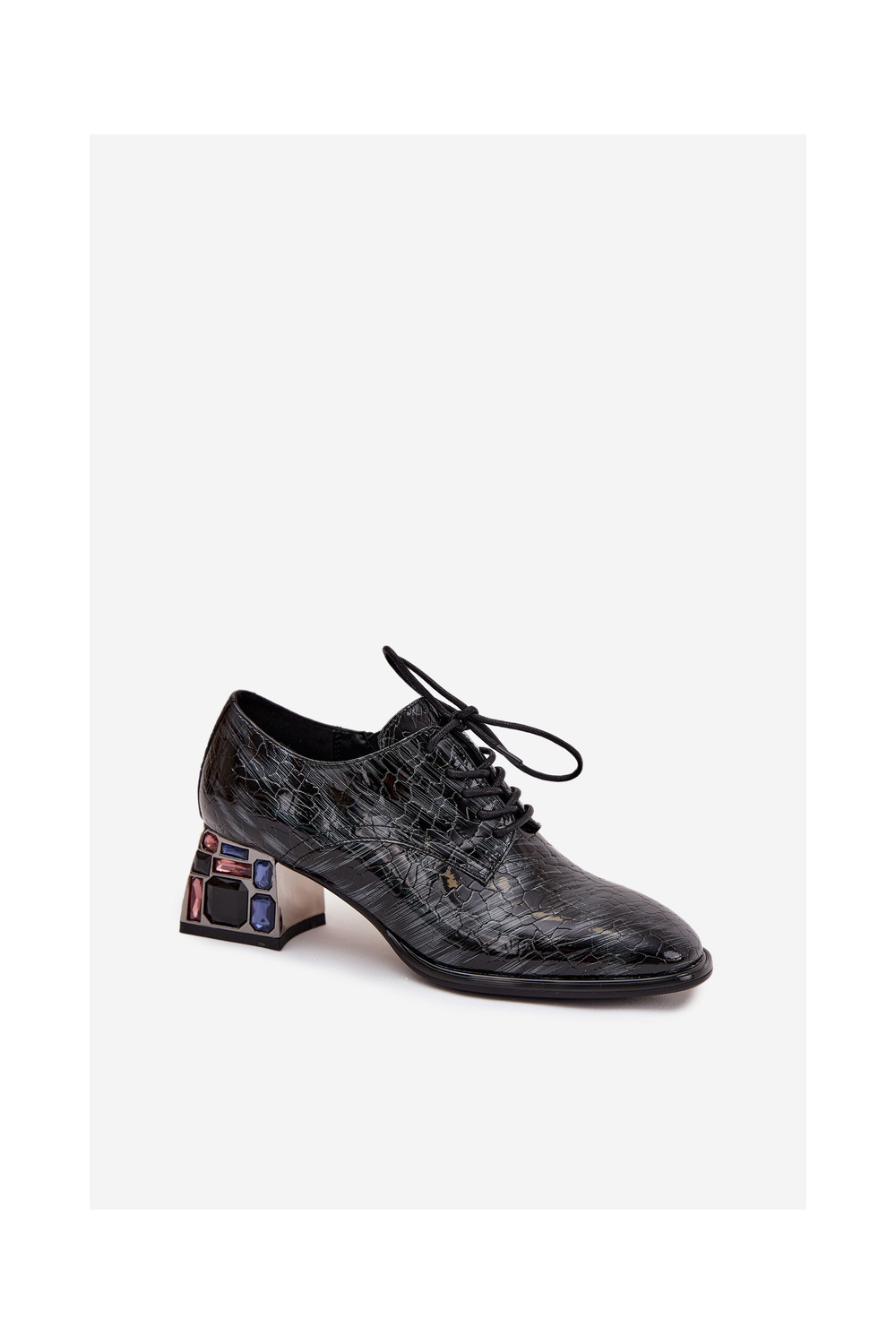 Lakuoti natūralios odos moteriški pusbačiai su kulniukais ir spindinčiomis akutėmis Artiker 57C0072 pilkos spalvos
