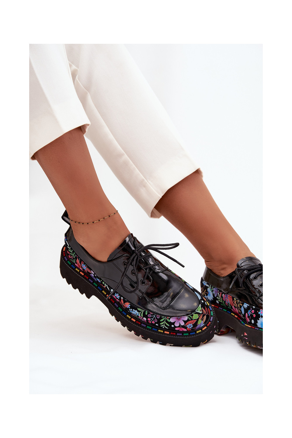 Natūralios odos batai su lako efektu ir raštais Artiker 57C0174 juodos spalvos