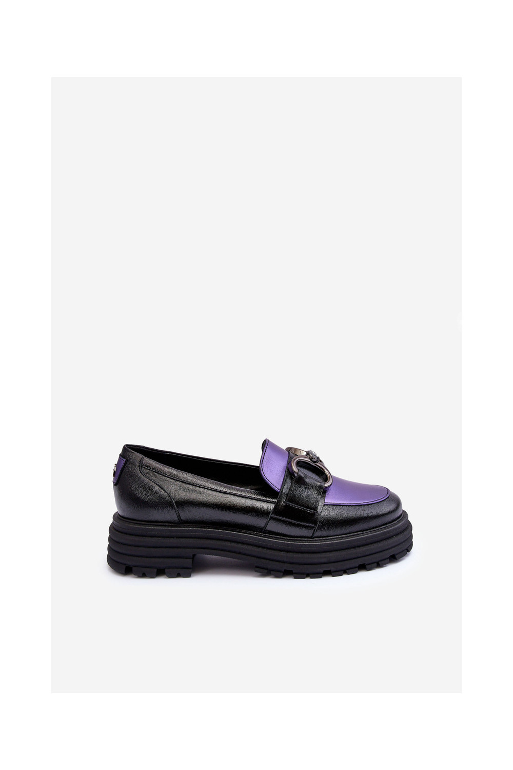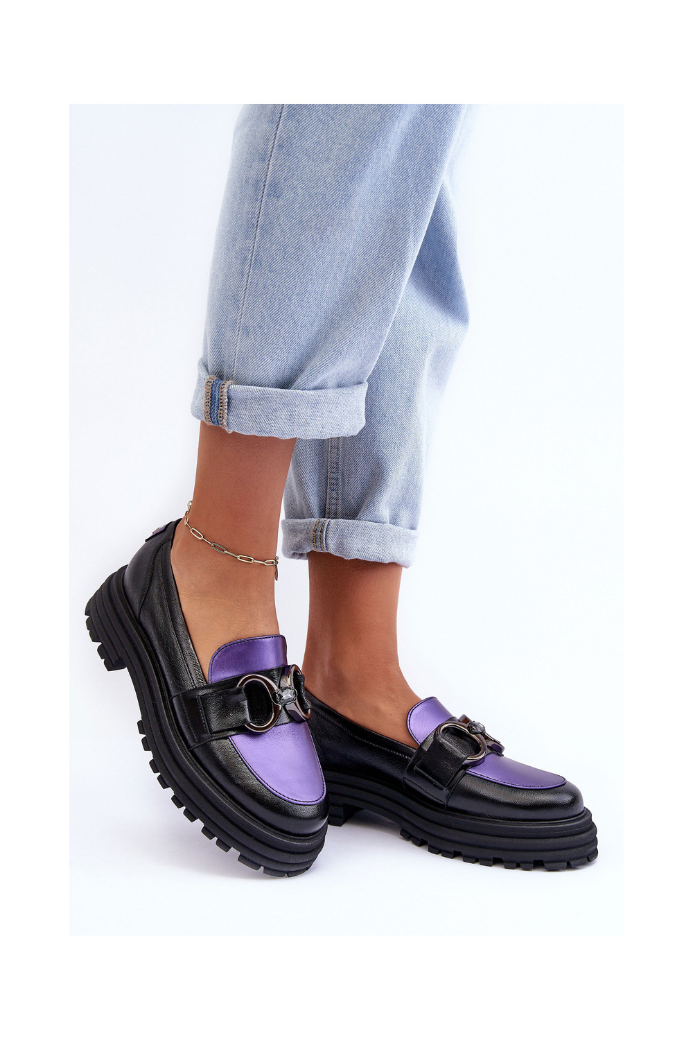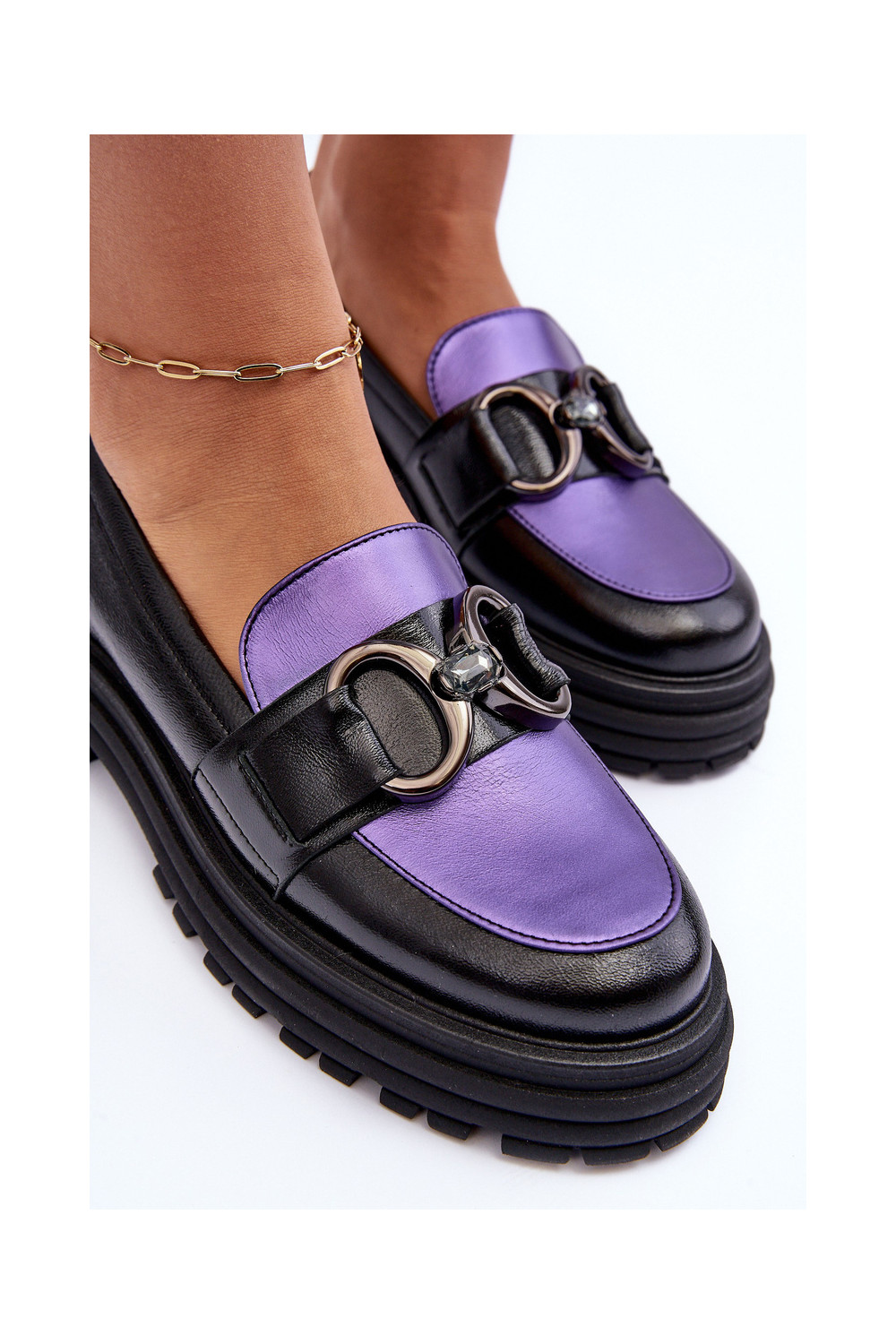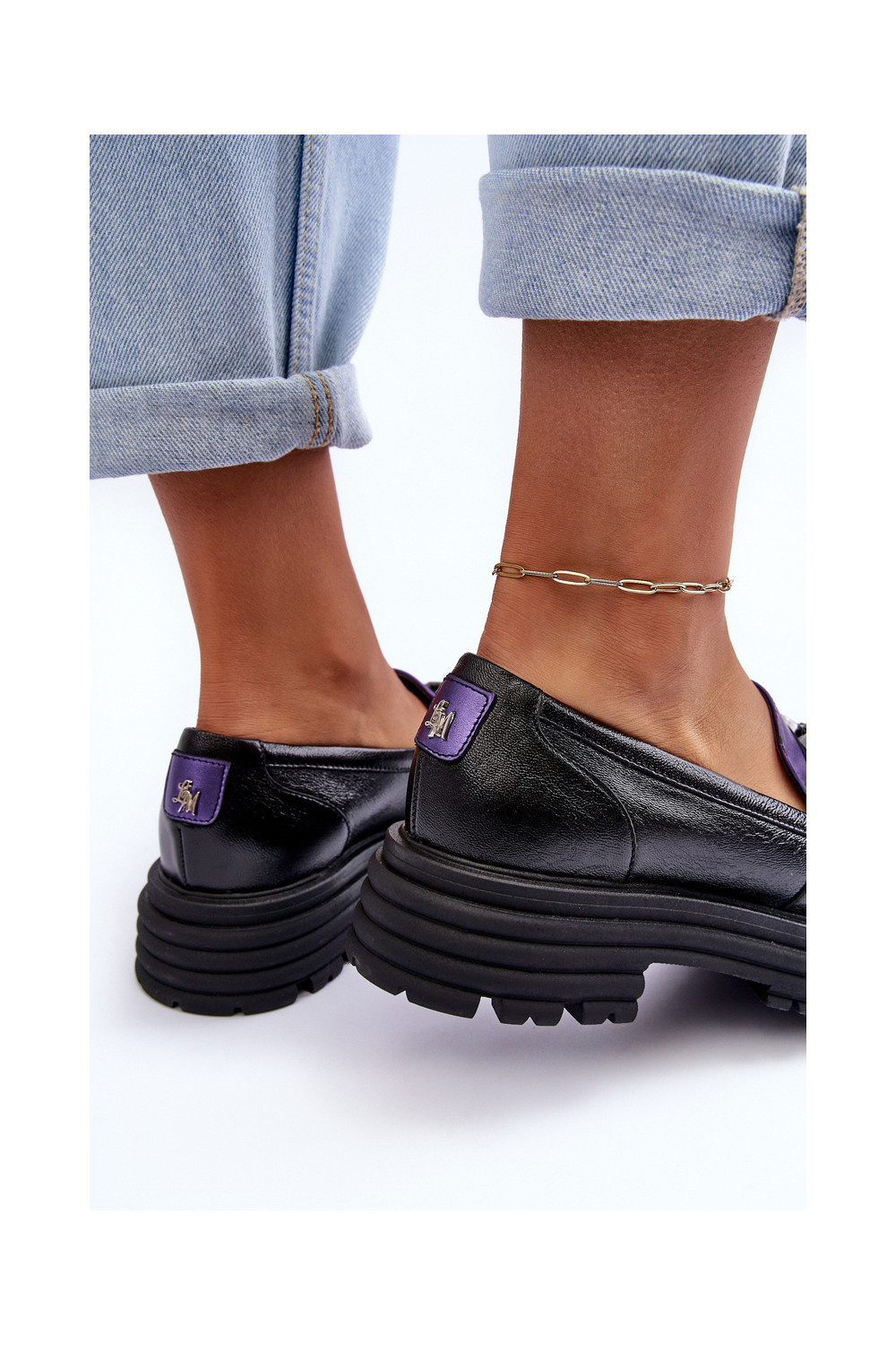 Odiniai pusbačiai masyviu padu Elkiza juodos ir violetinės spalvos