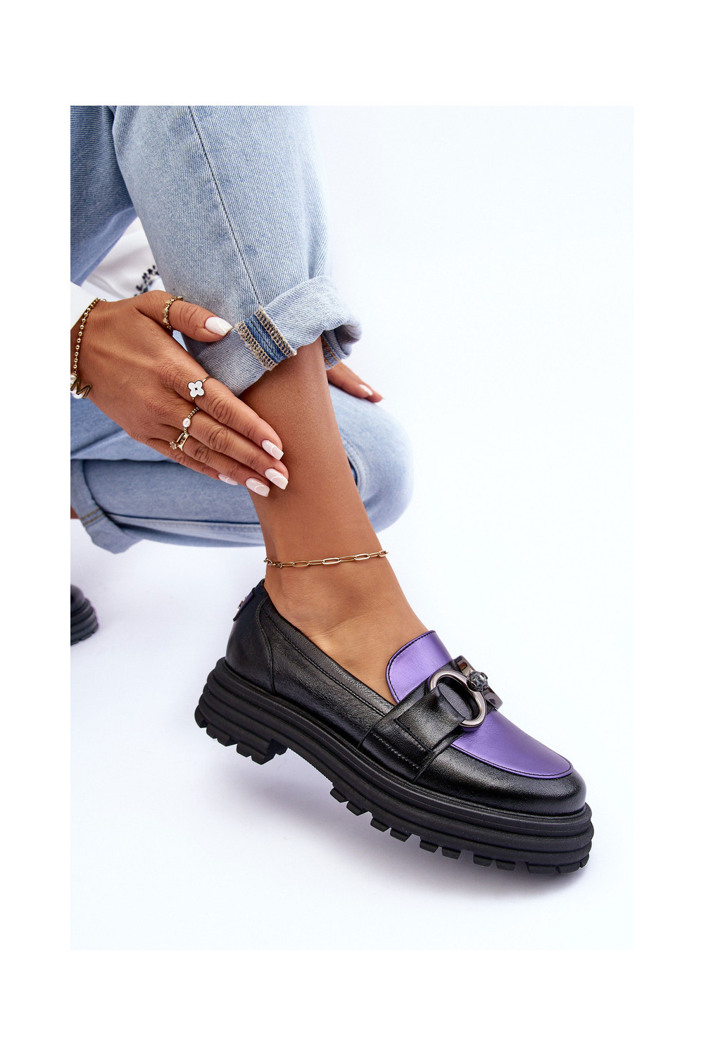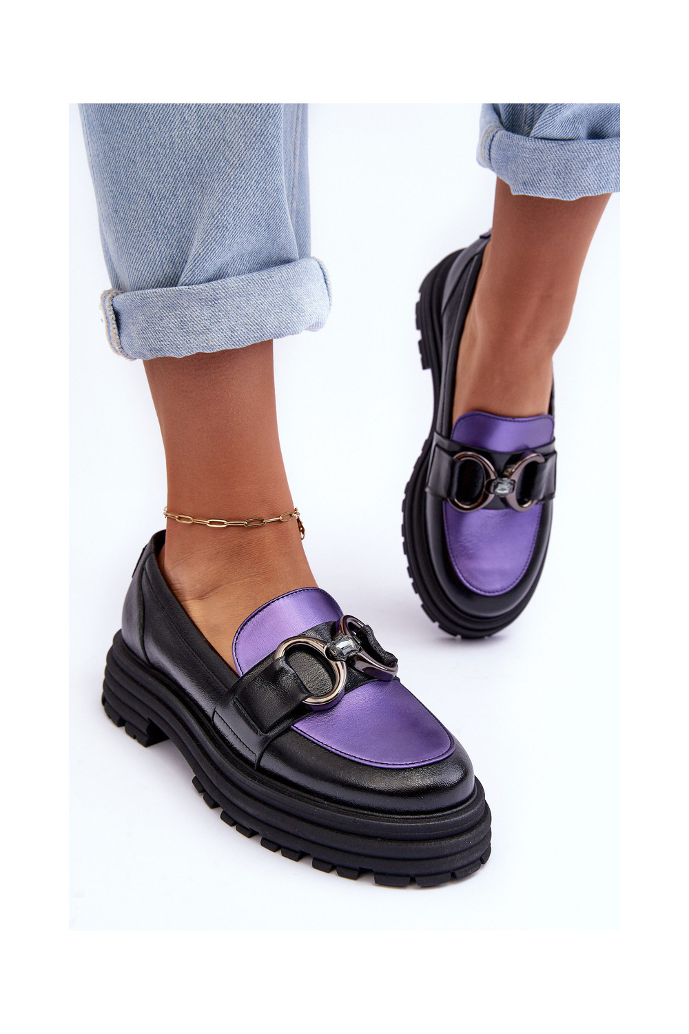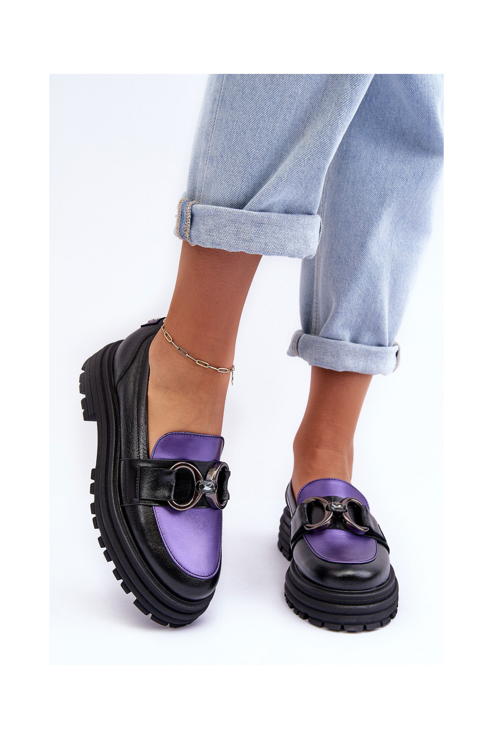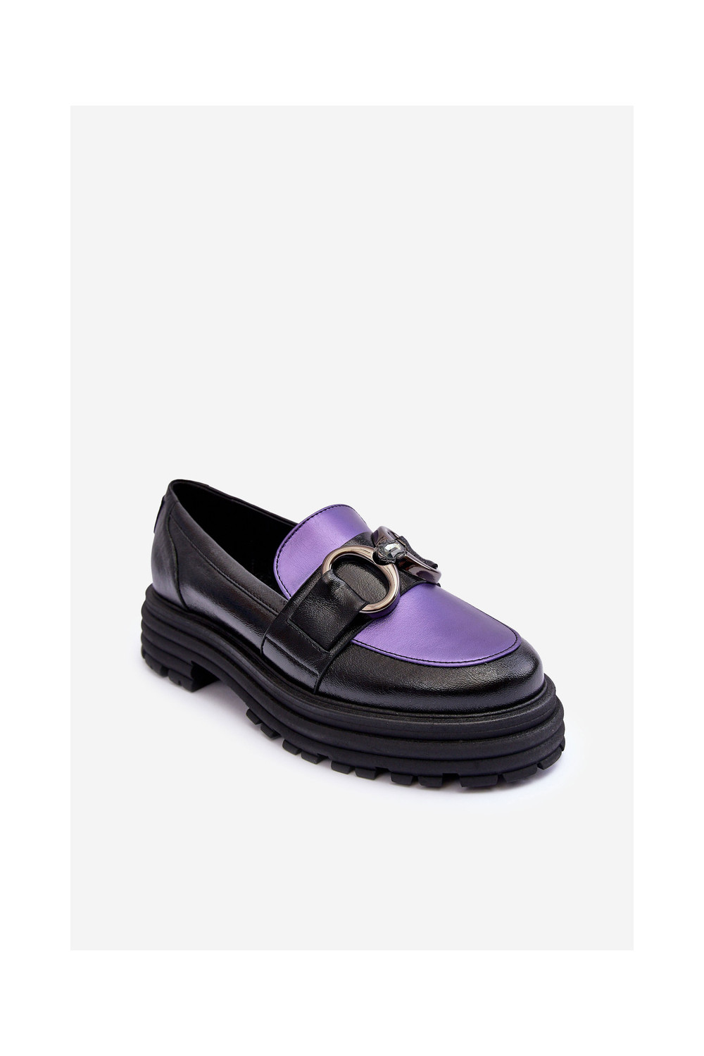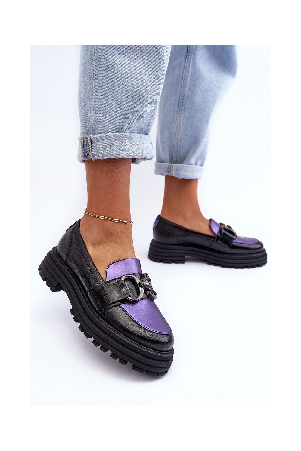 Odiniai pusbačiai masyviu padu Elkiza juodos ir violetinės spalvos