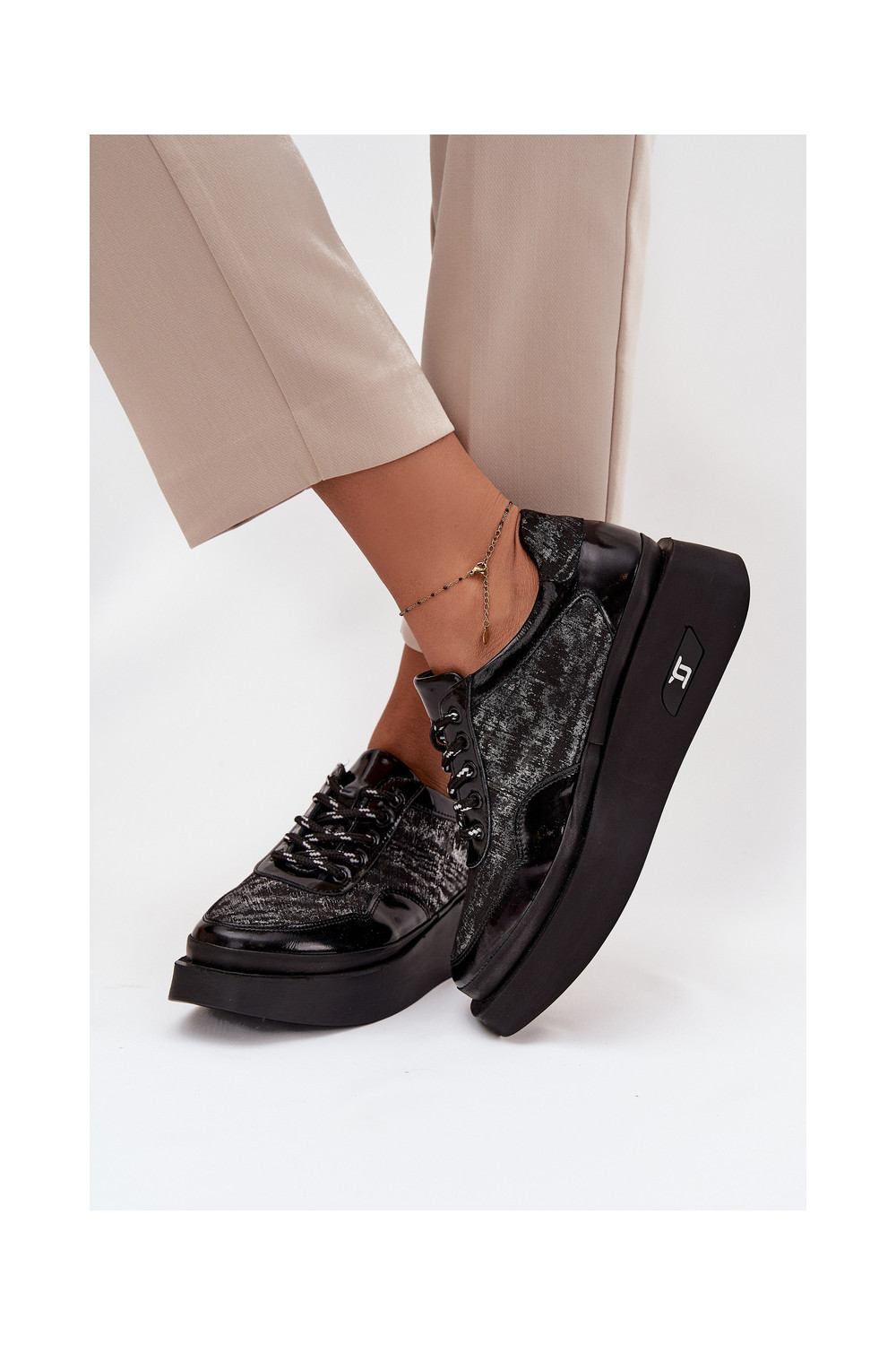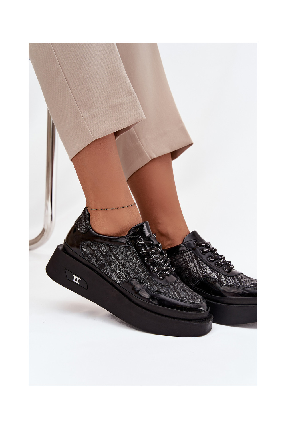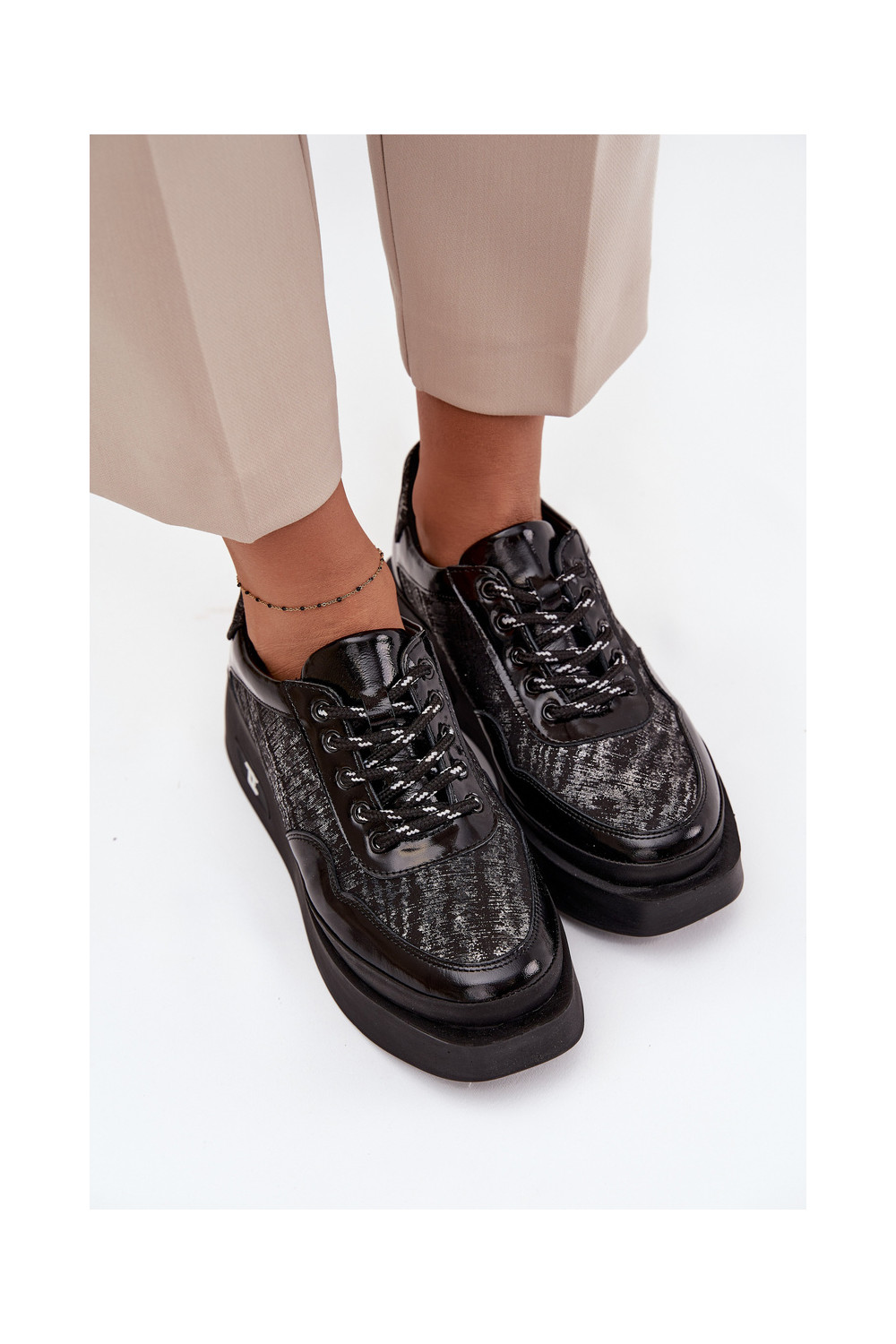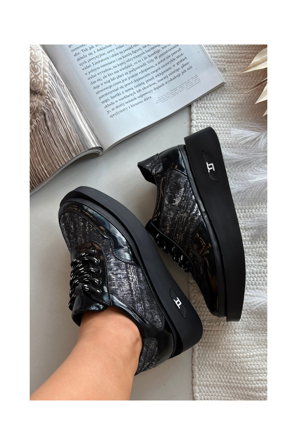 Odiniai moteriški suvarstomi batai su platforma Artiker 57C2043, juodos ir sidabro spalvos