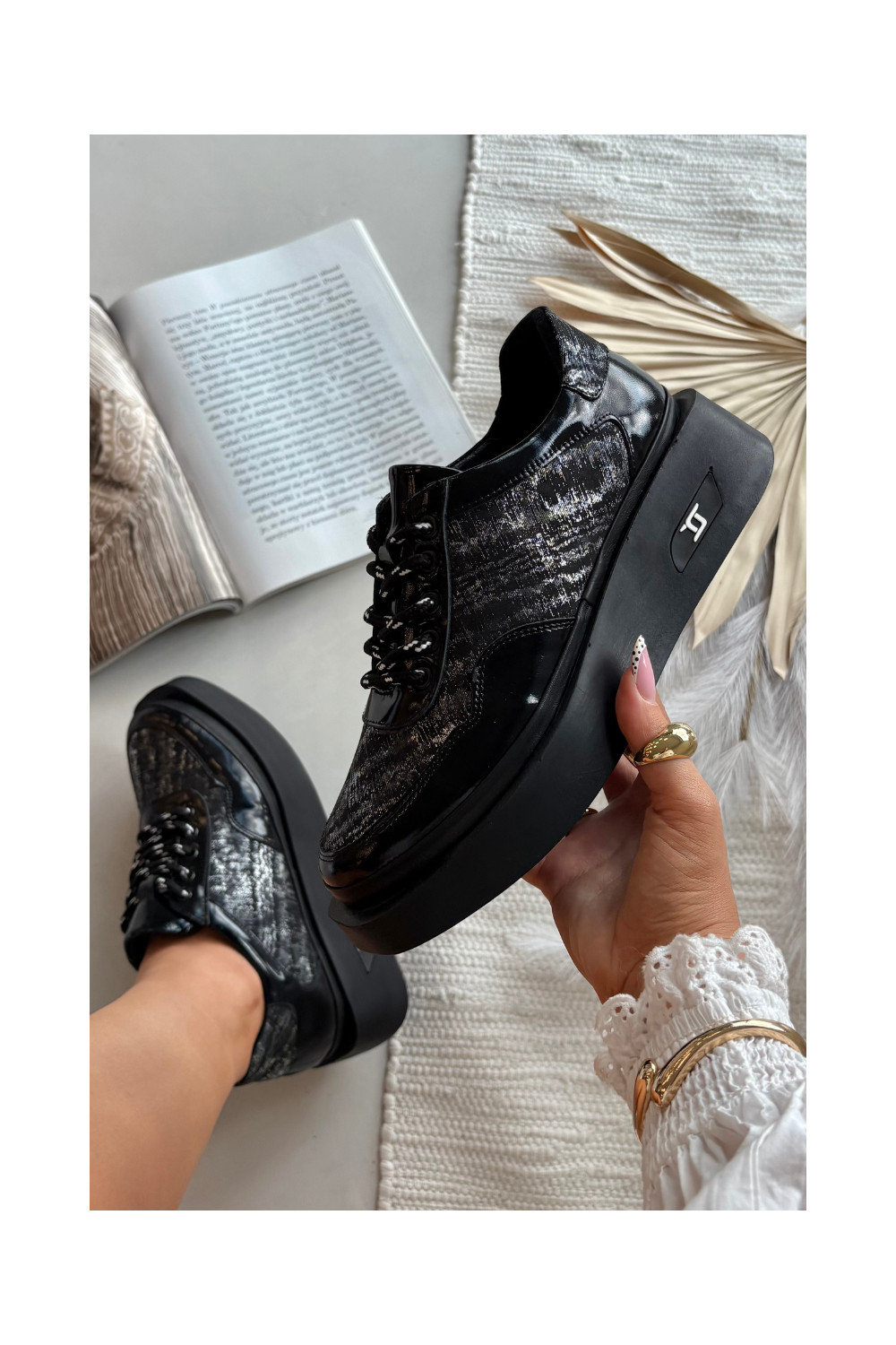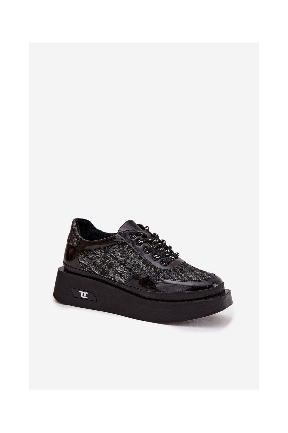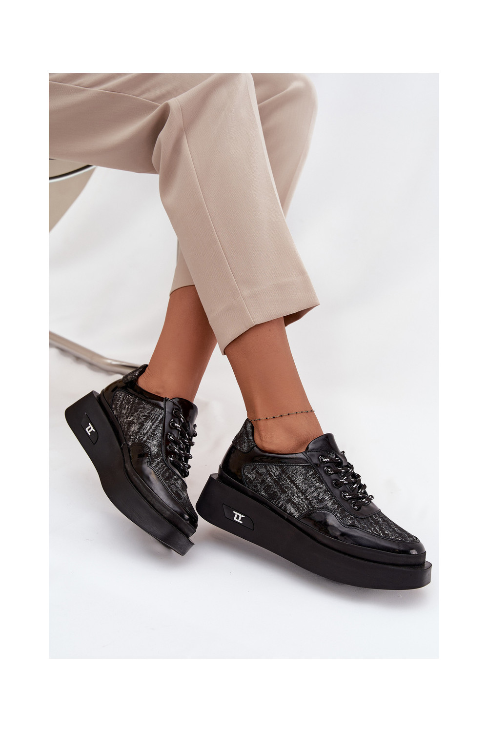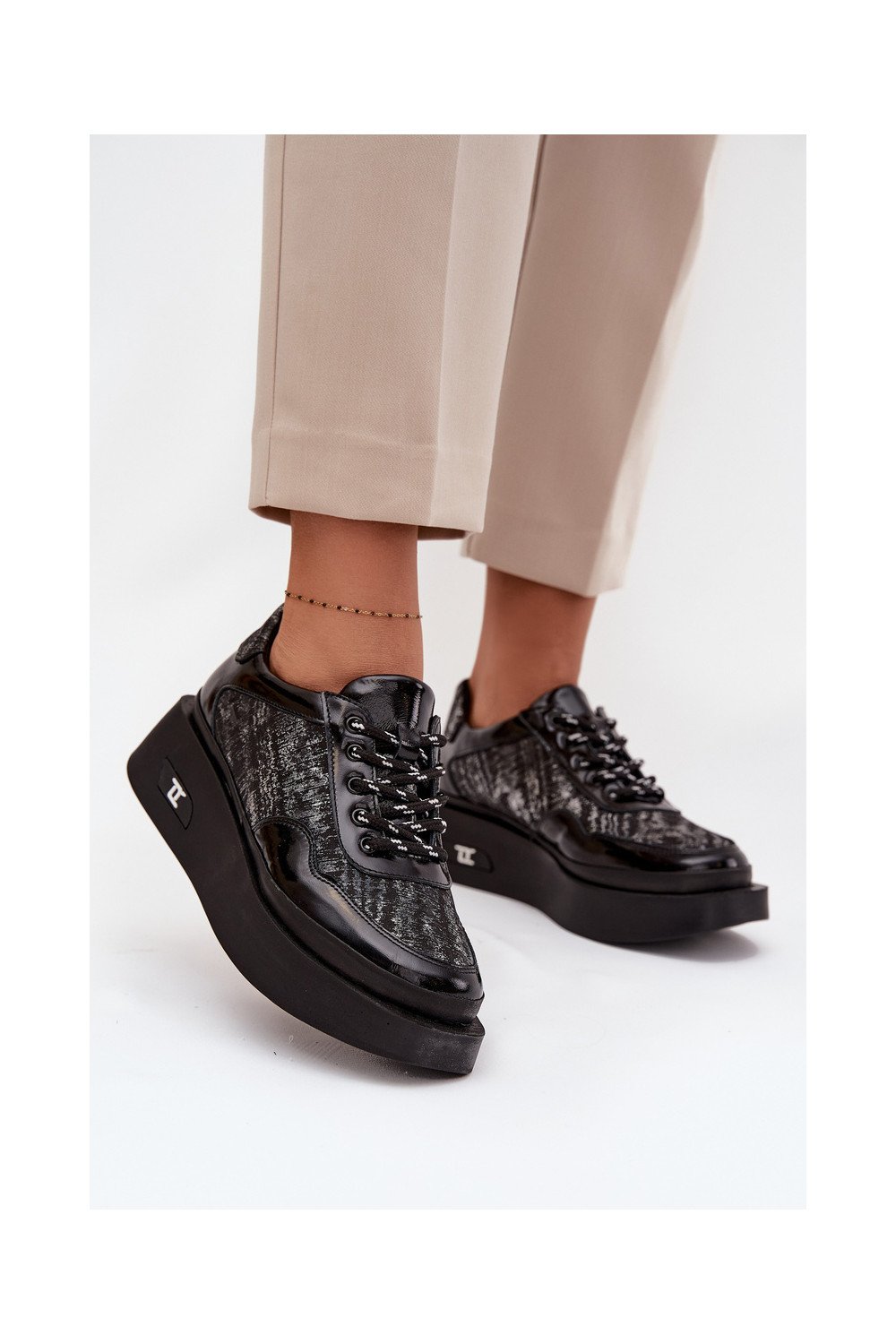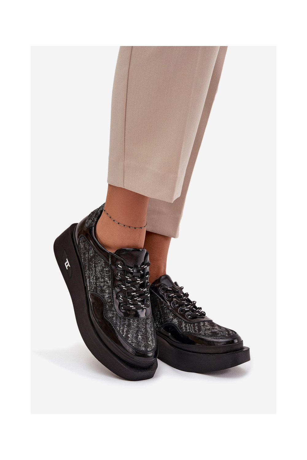Odiniai moteriški suvarstomi batai su platforma Artiker 57C2043, juodos ir sidabro spalvos
