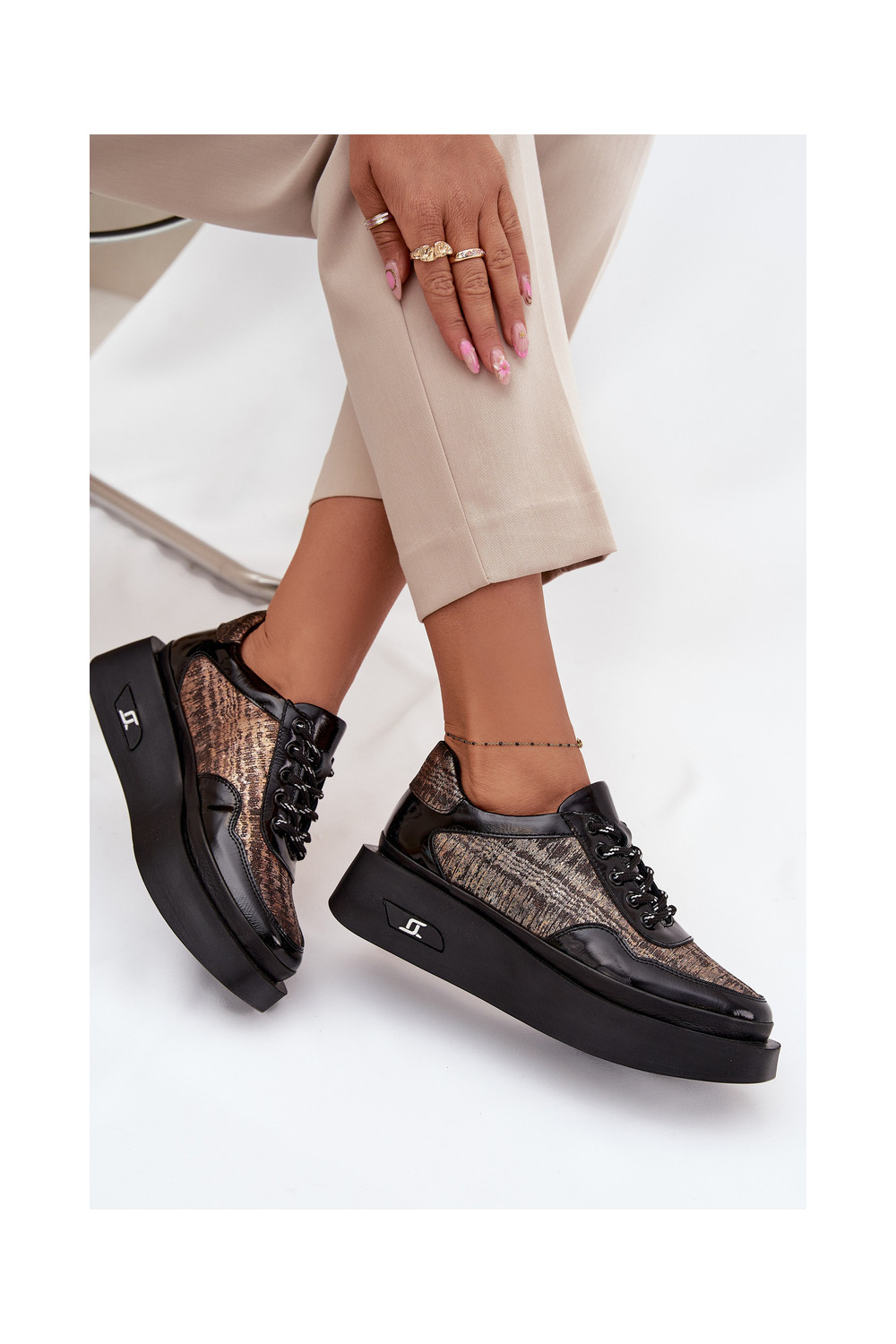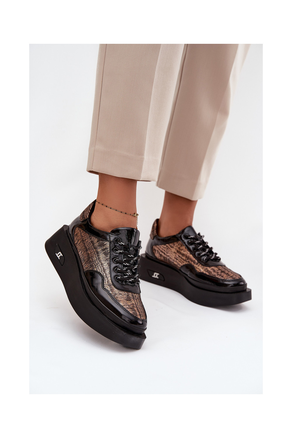 Odiniai moteriški suvarstomi batai su platforma Artiker 57C2044, juodos spalvos