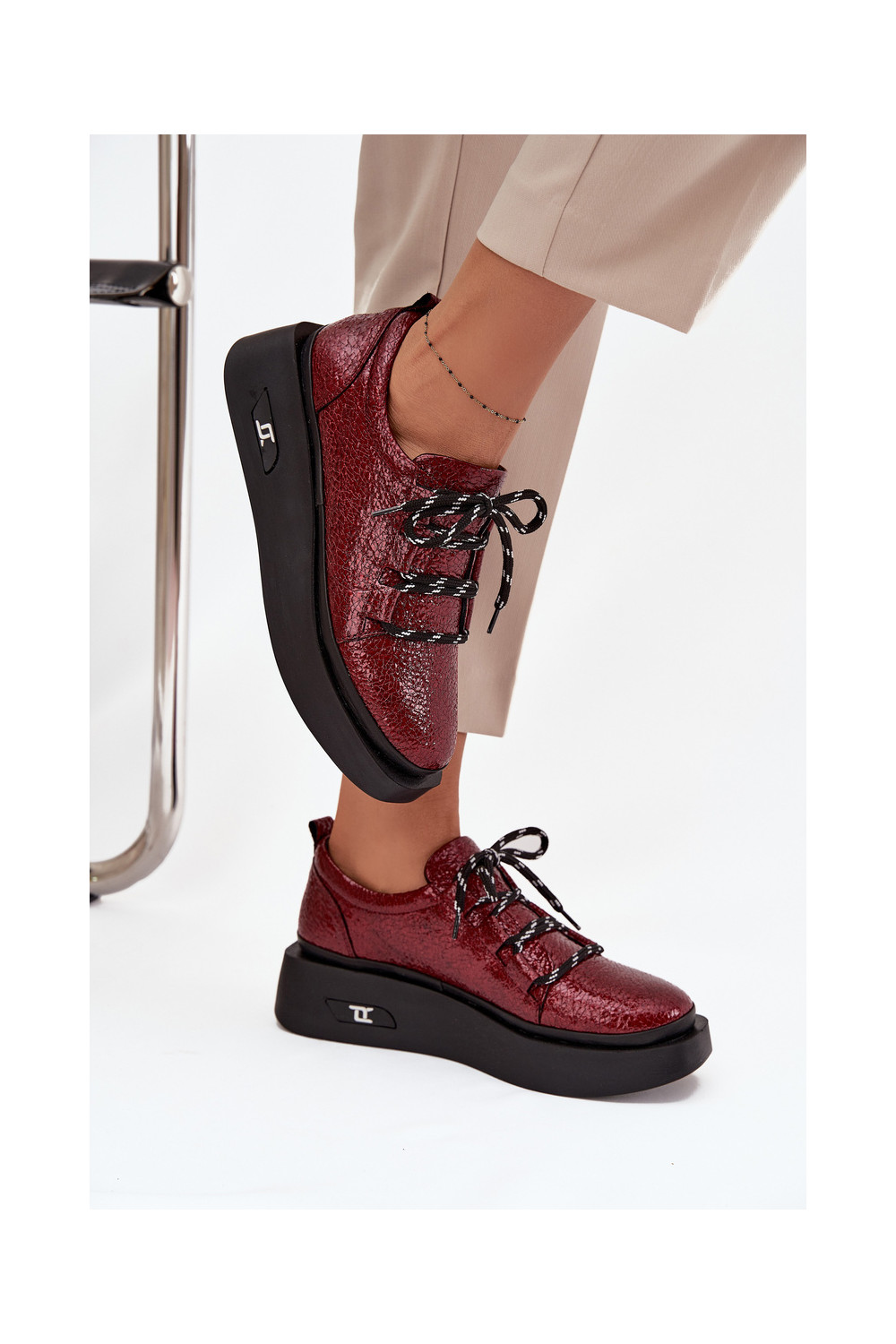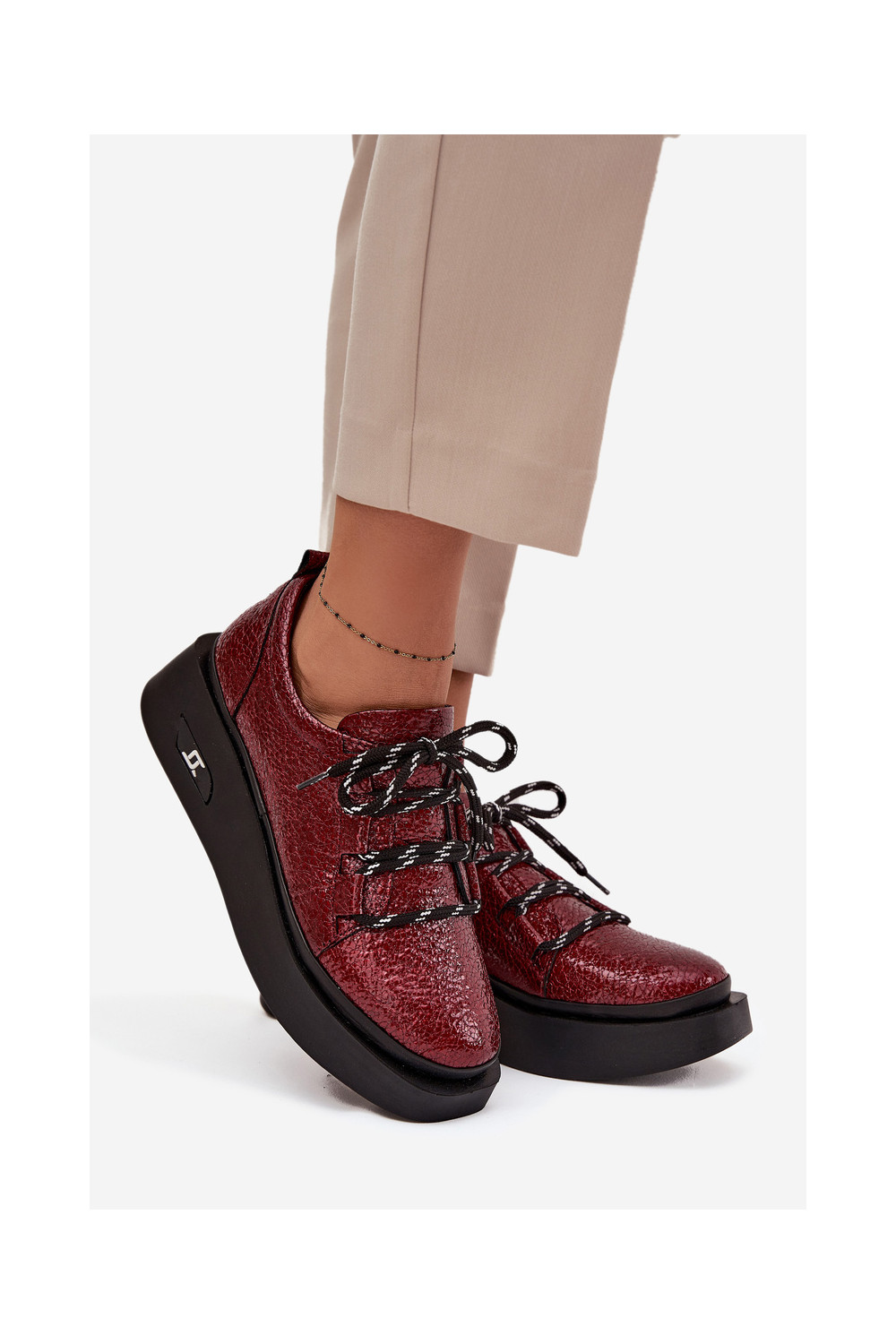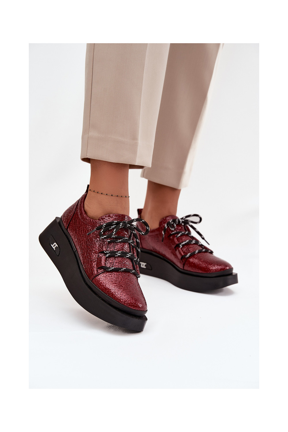 Lakuoti natūralios odos moteriški pusbačiai su platforma Artiker 57C2046, bordo spalvos