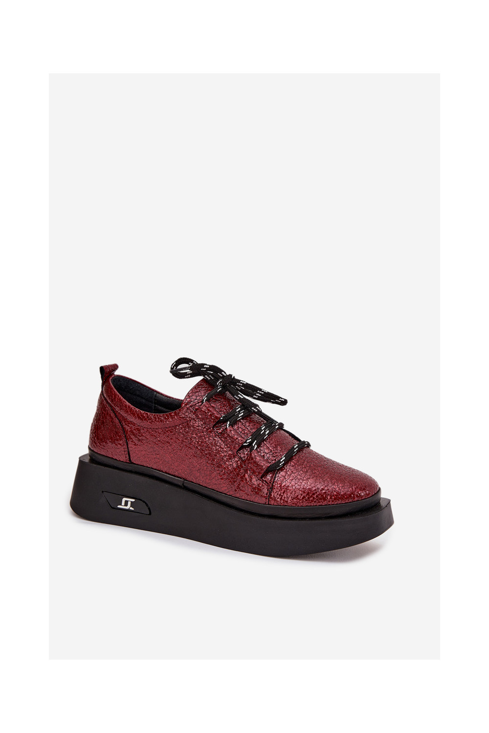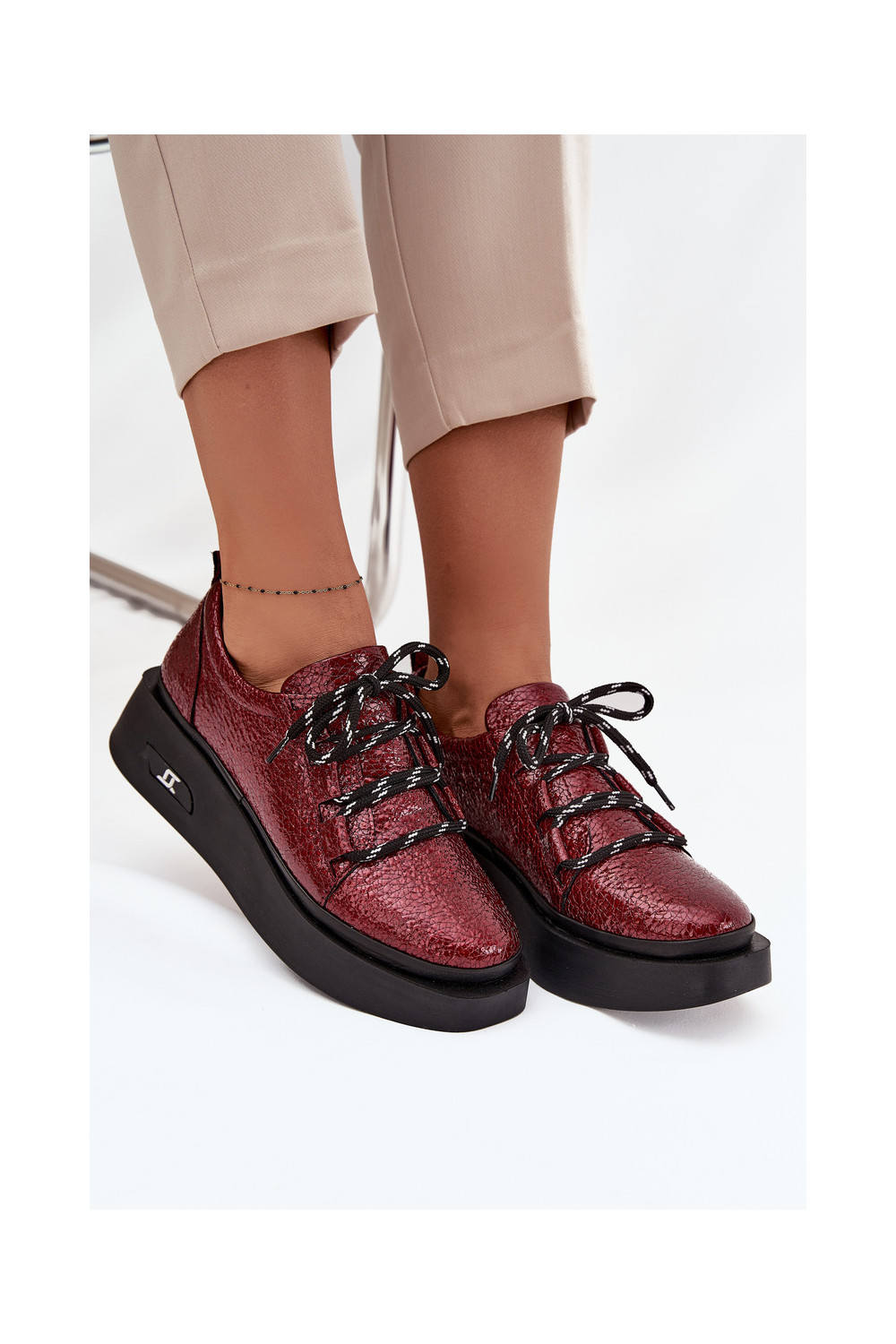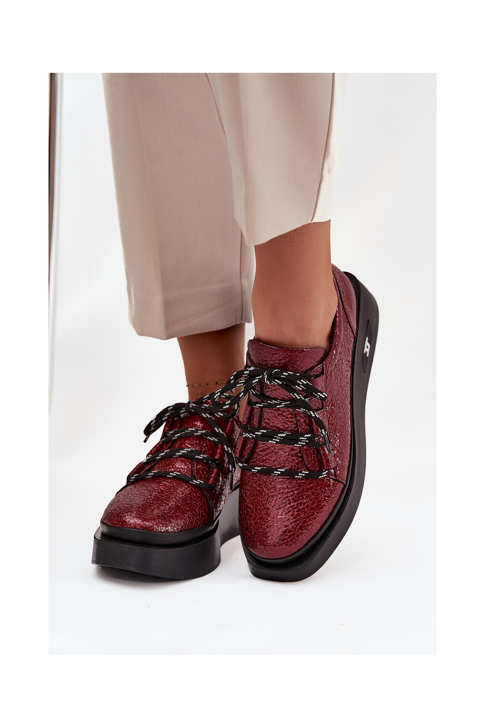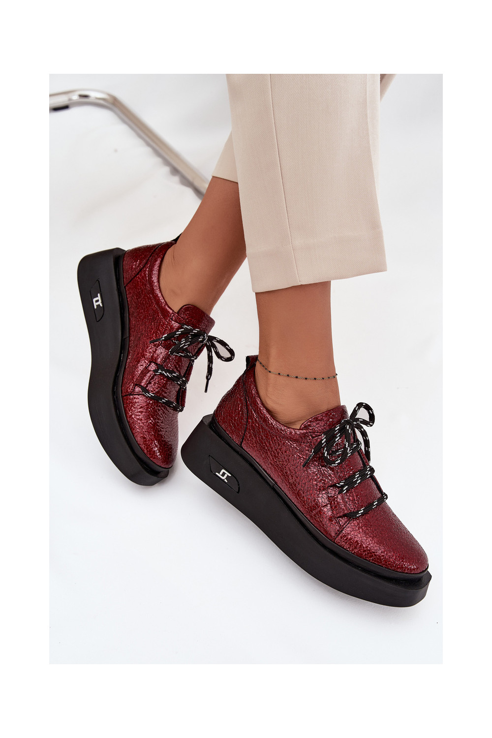 Lakuoti natūralios odos moteriški pusbačiai su platforma Artiker 57C2046, bordo spalvos