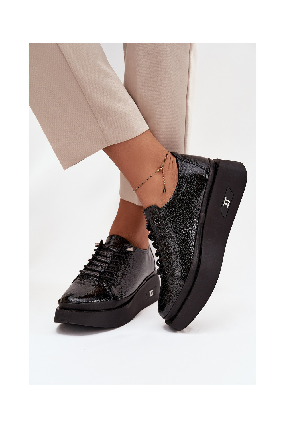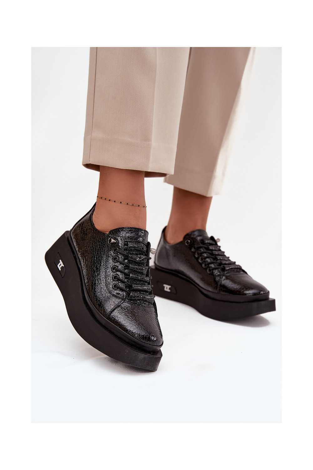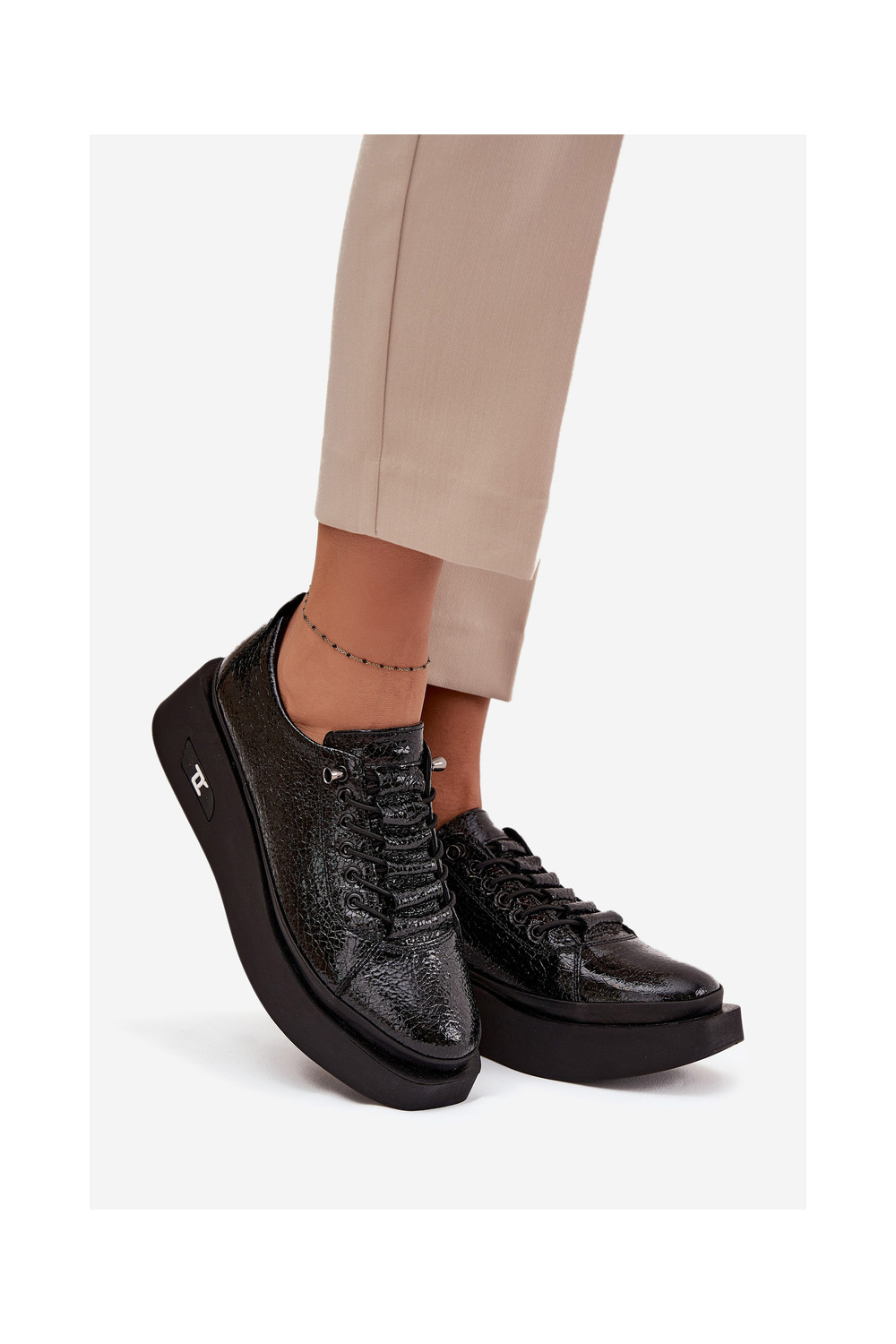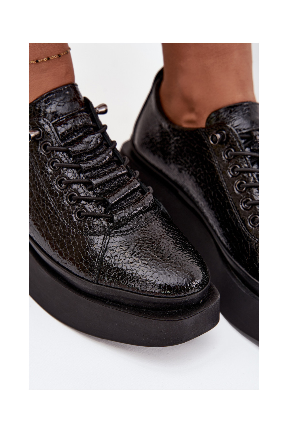 Lakuoti natūralios odos moteriški pusbačiai su platforma Artiker 57C2041, juodos spalvos