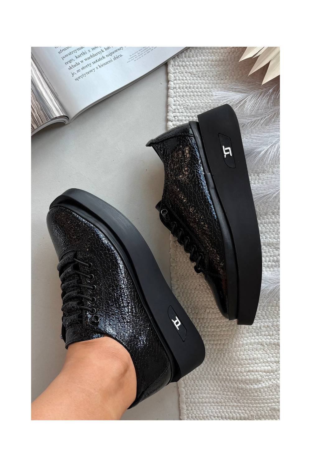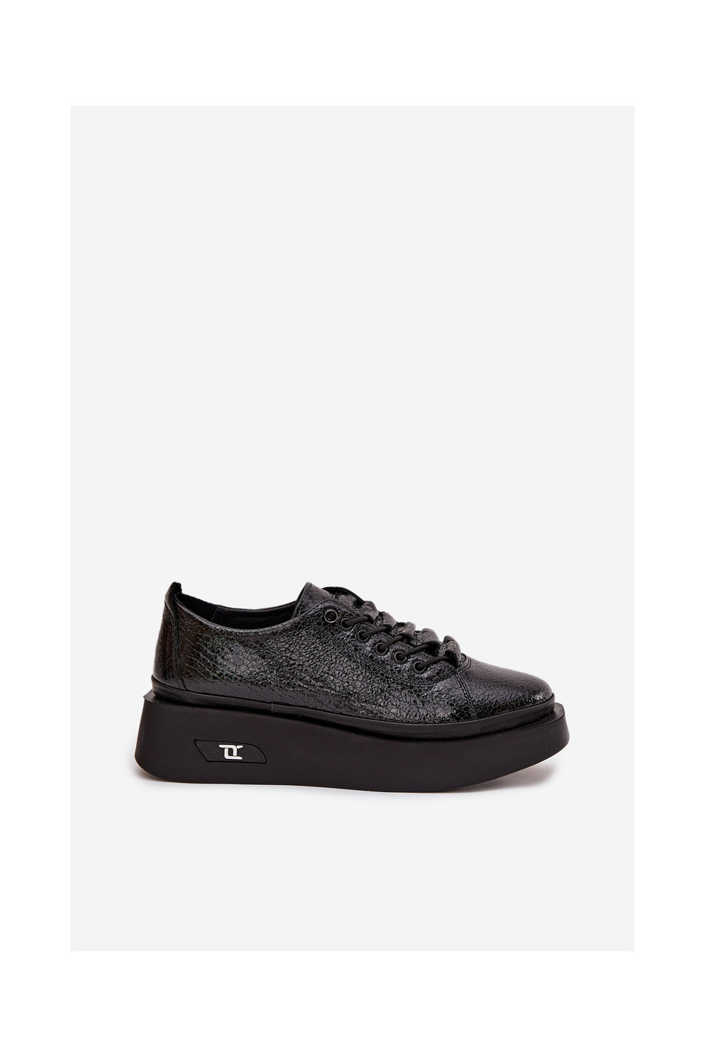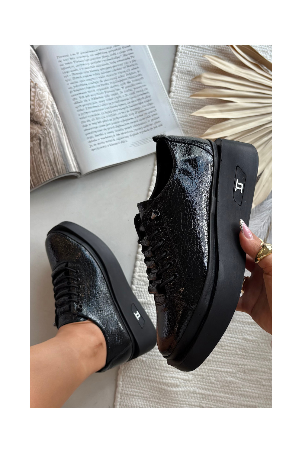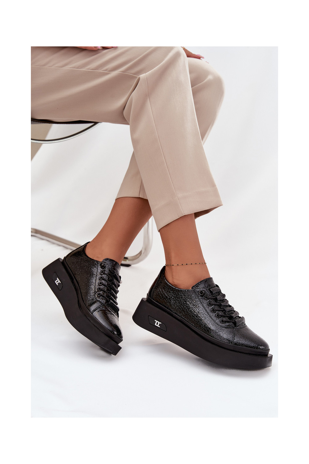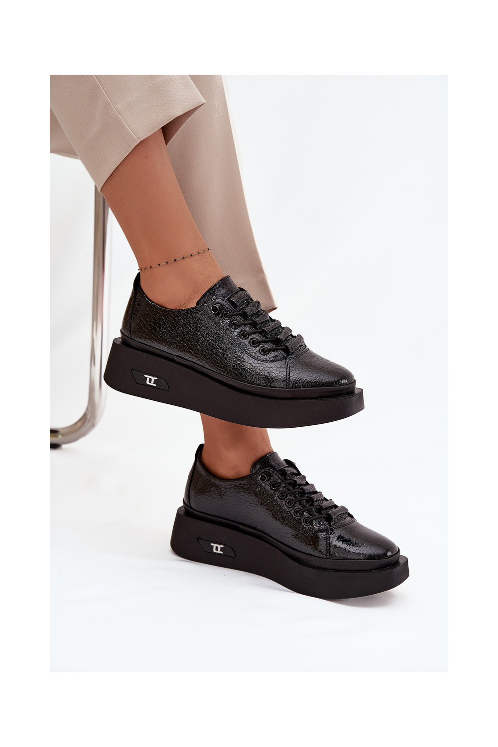 Lakuoti natūralios odos moteriški pusbačiai su platforma Artiker 57C2041, juodos spalvos