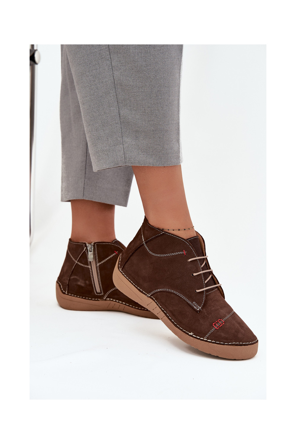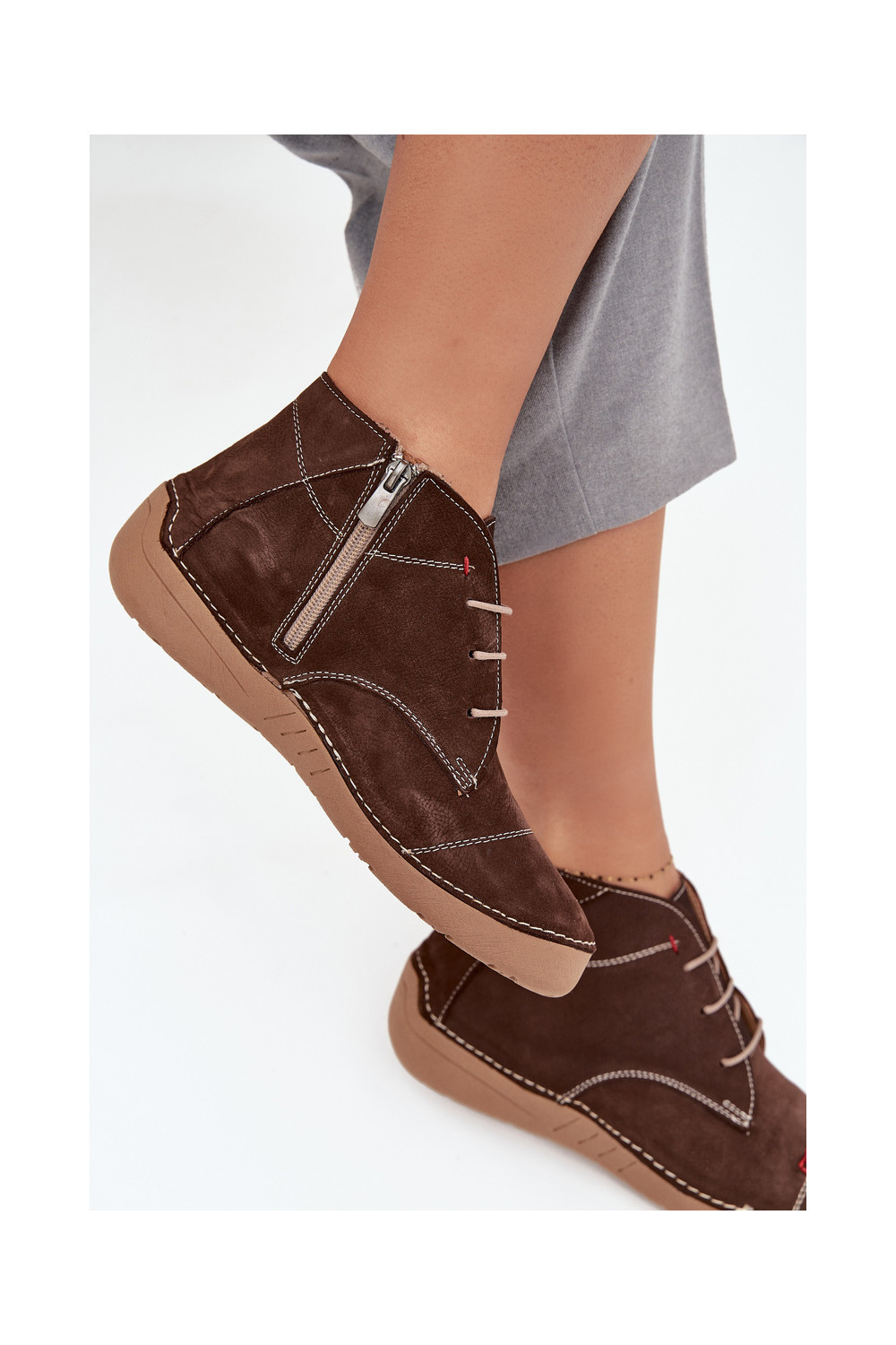 Odiniai moteriški batai su siūlėmis, pilies tipo, Artiker 57C2117, rudos spalvos