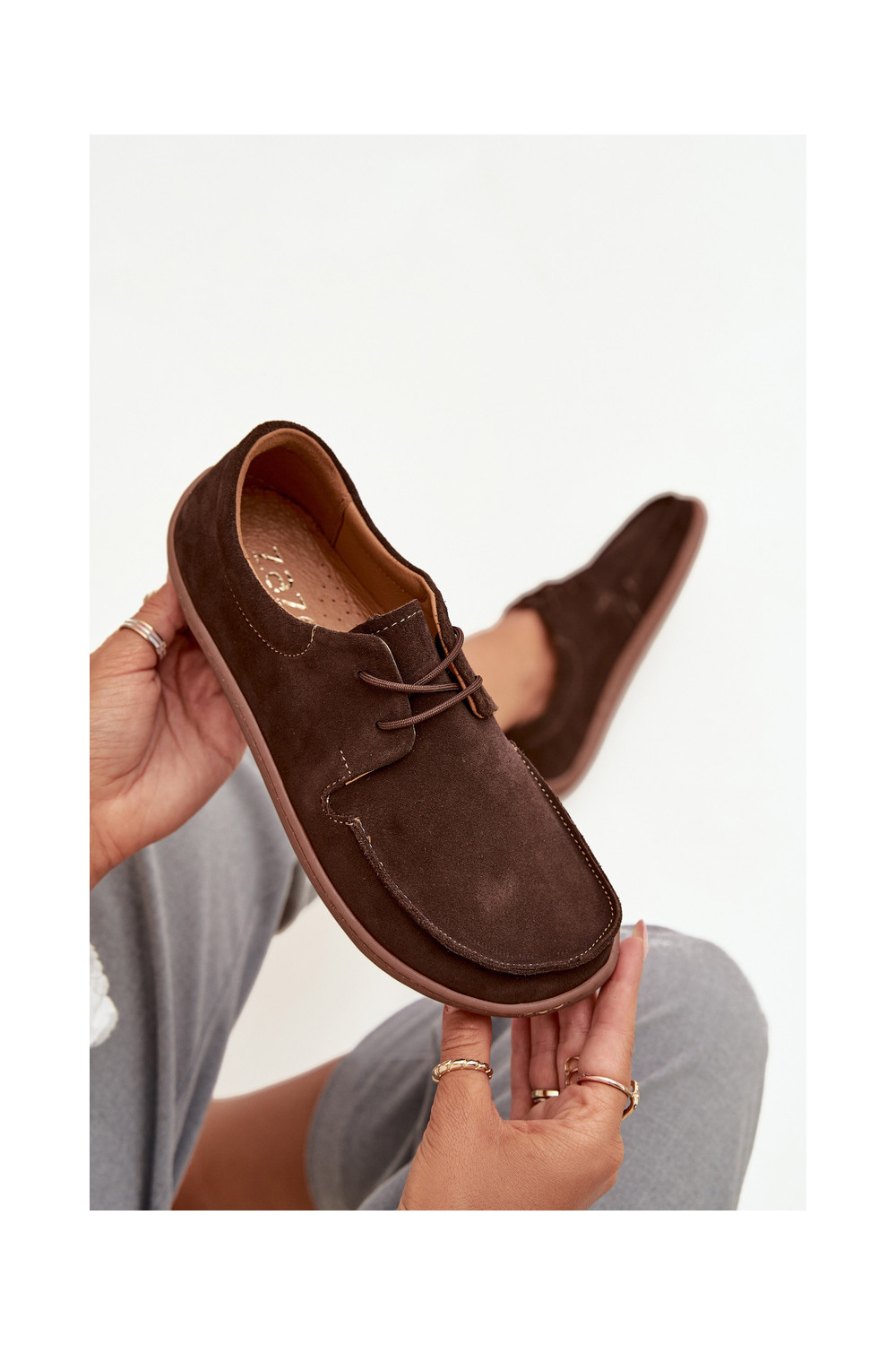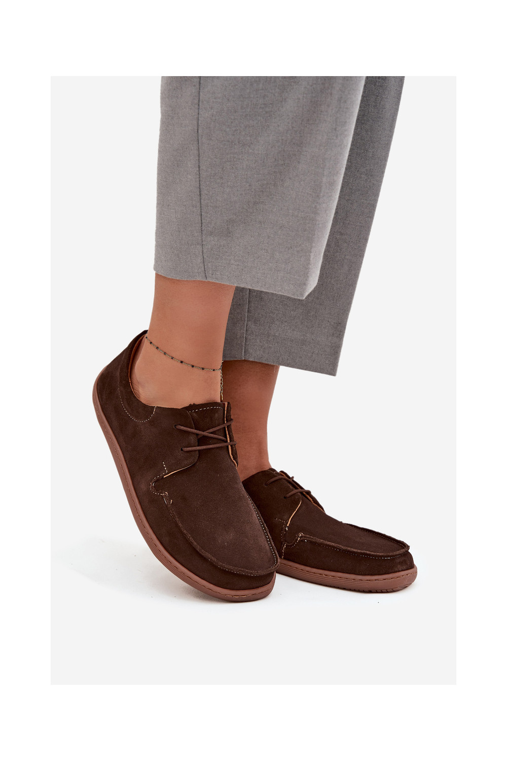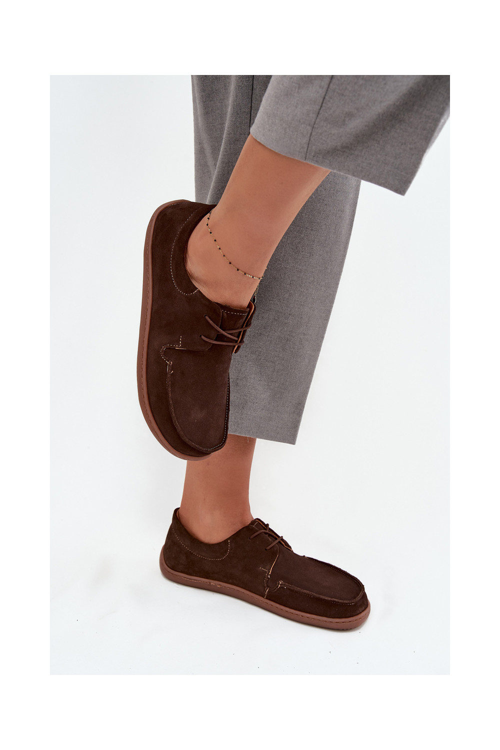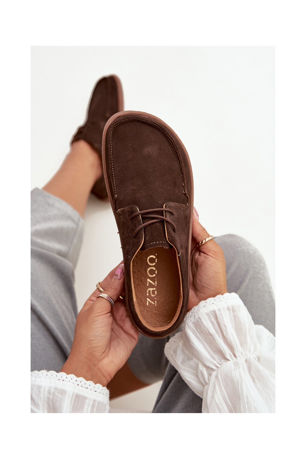 moteriški natūralios zomšos „barefoot" tipo batai Zazoo 327 šokoladinės spalvos