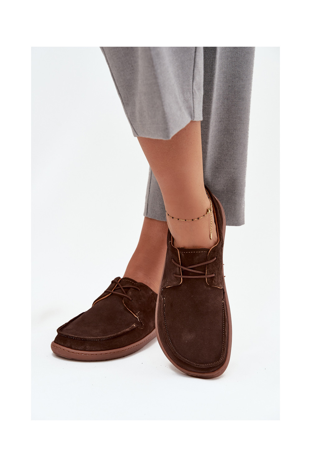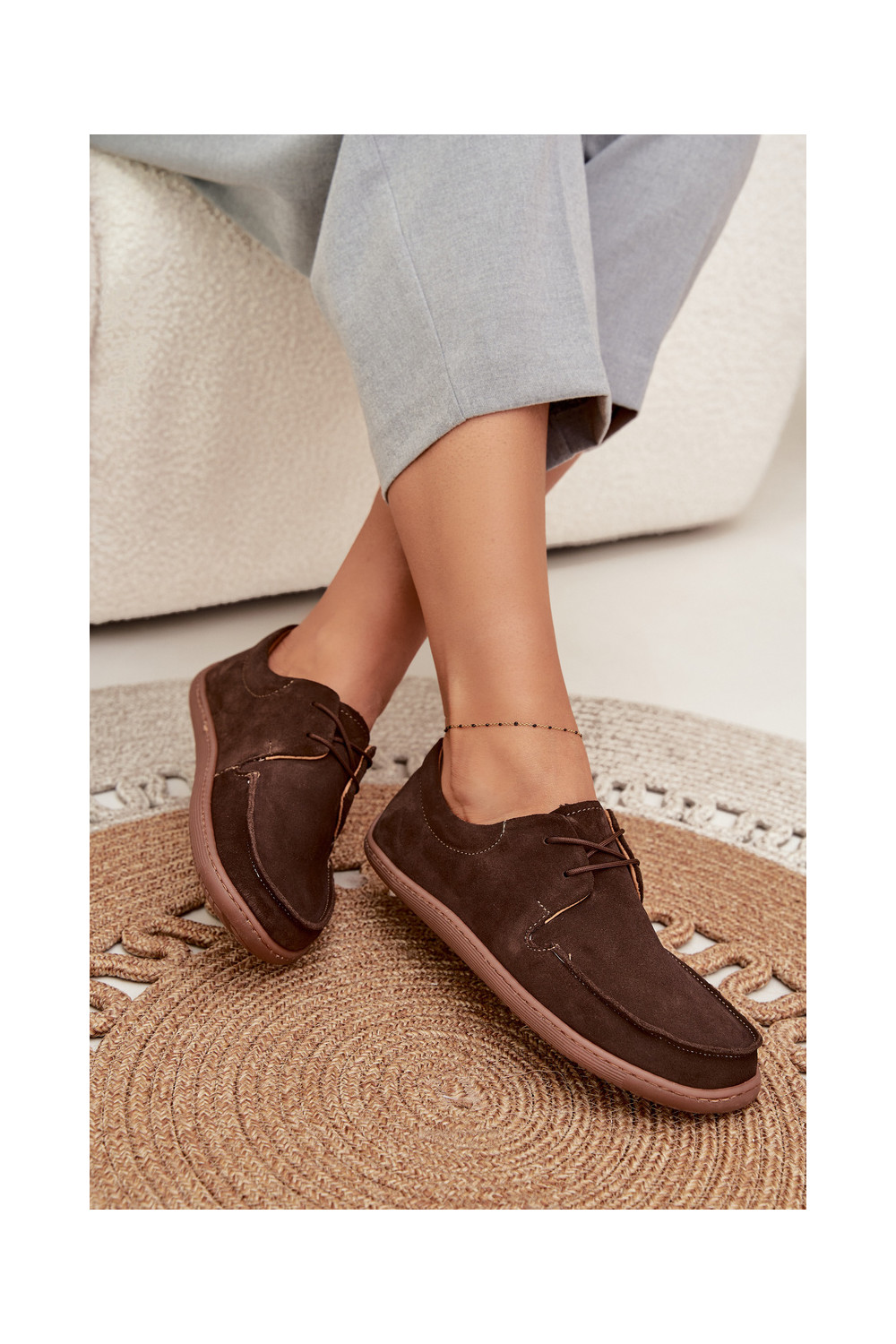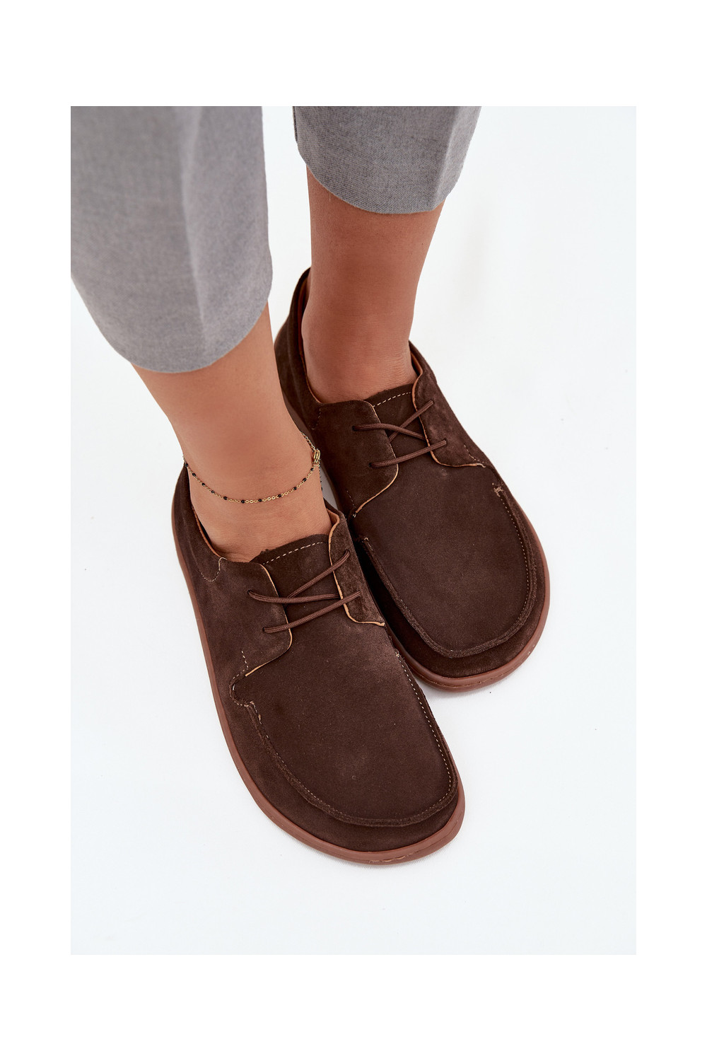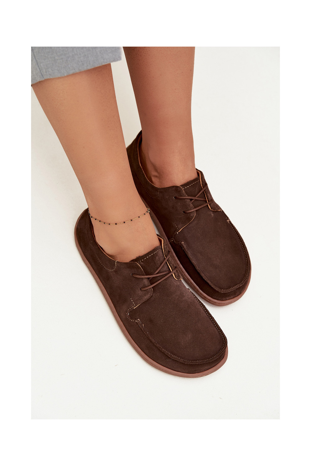 moteriški natūralios zomšos „barefoot" tipo batai Zazoo 327 šokoladinės spalvos