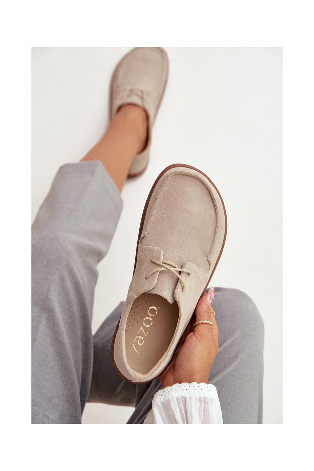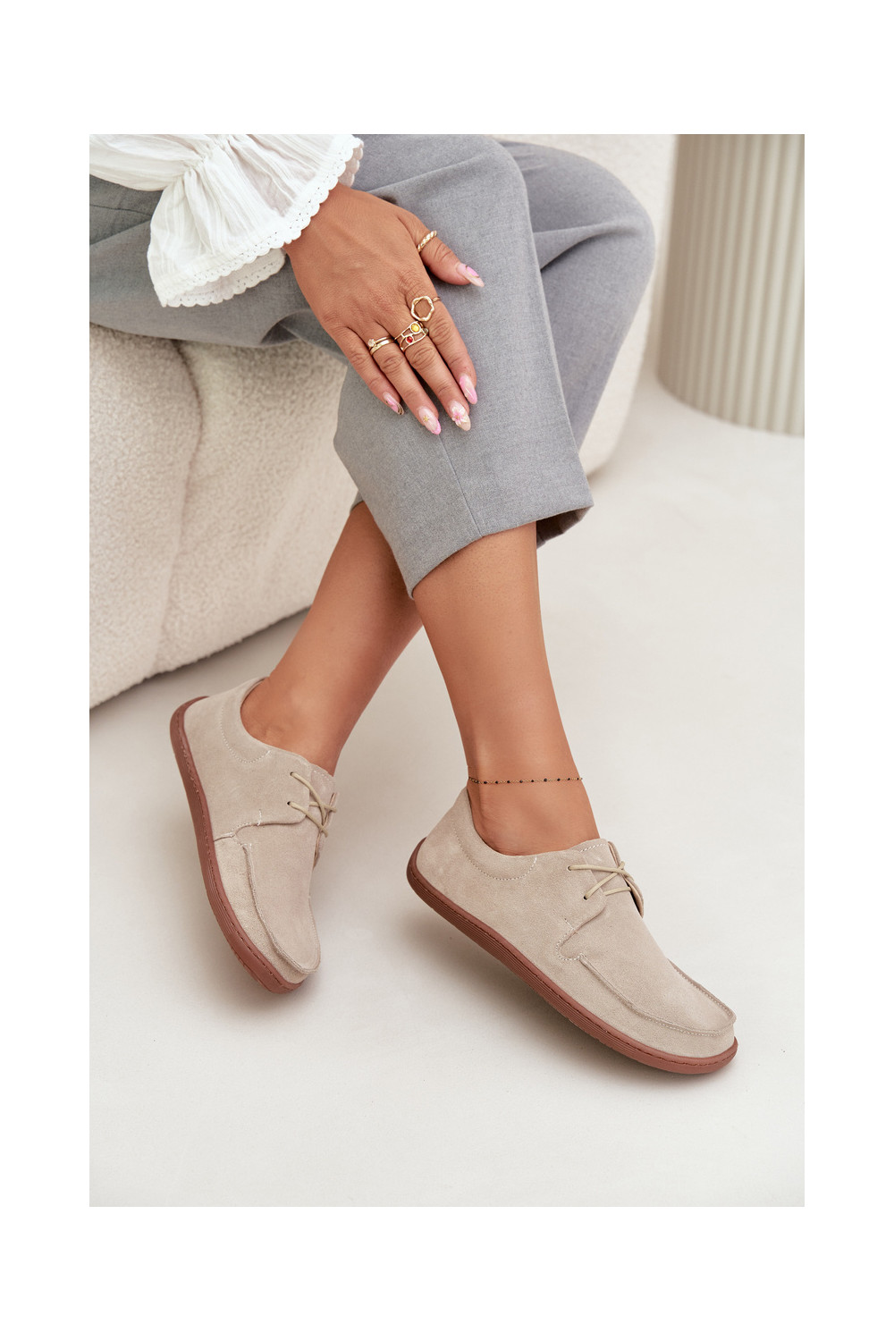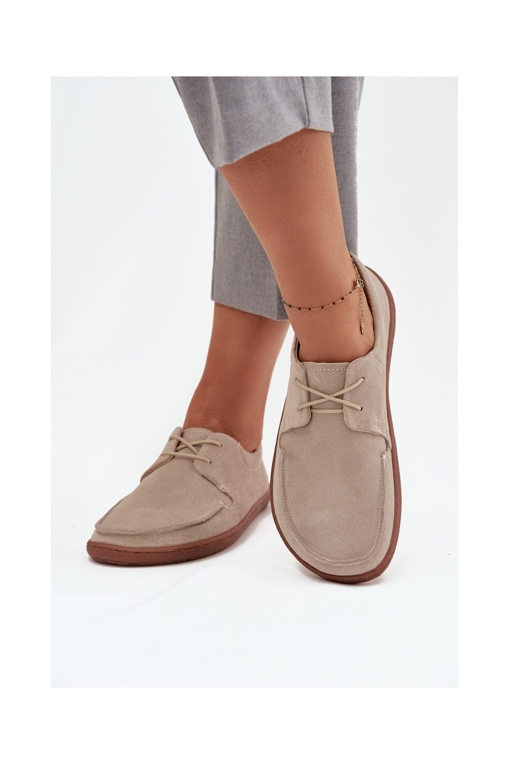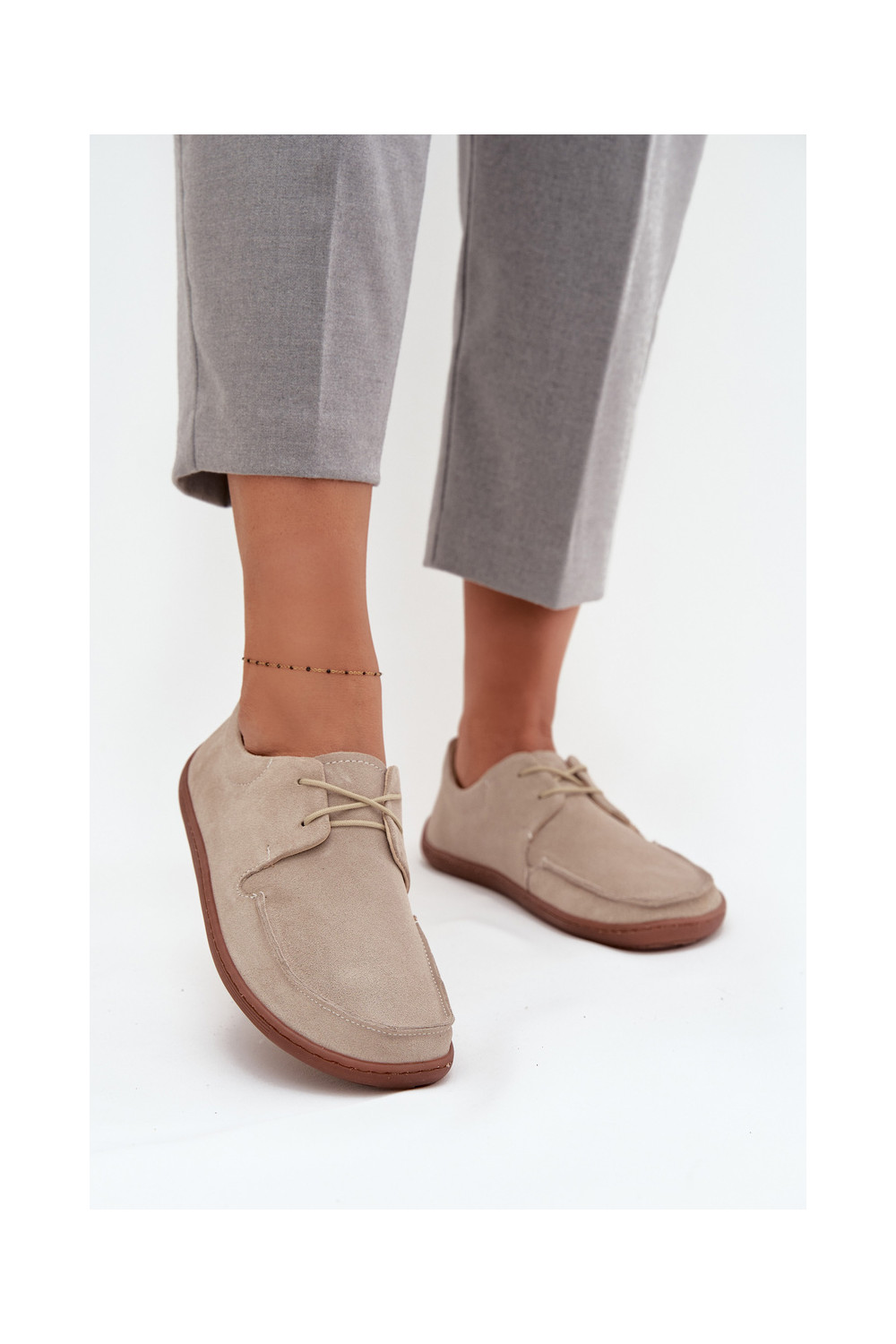 moteriški natūralios zomšos „barefoot" tipo batai Zazoo 327 dramblio kaulo spalvos