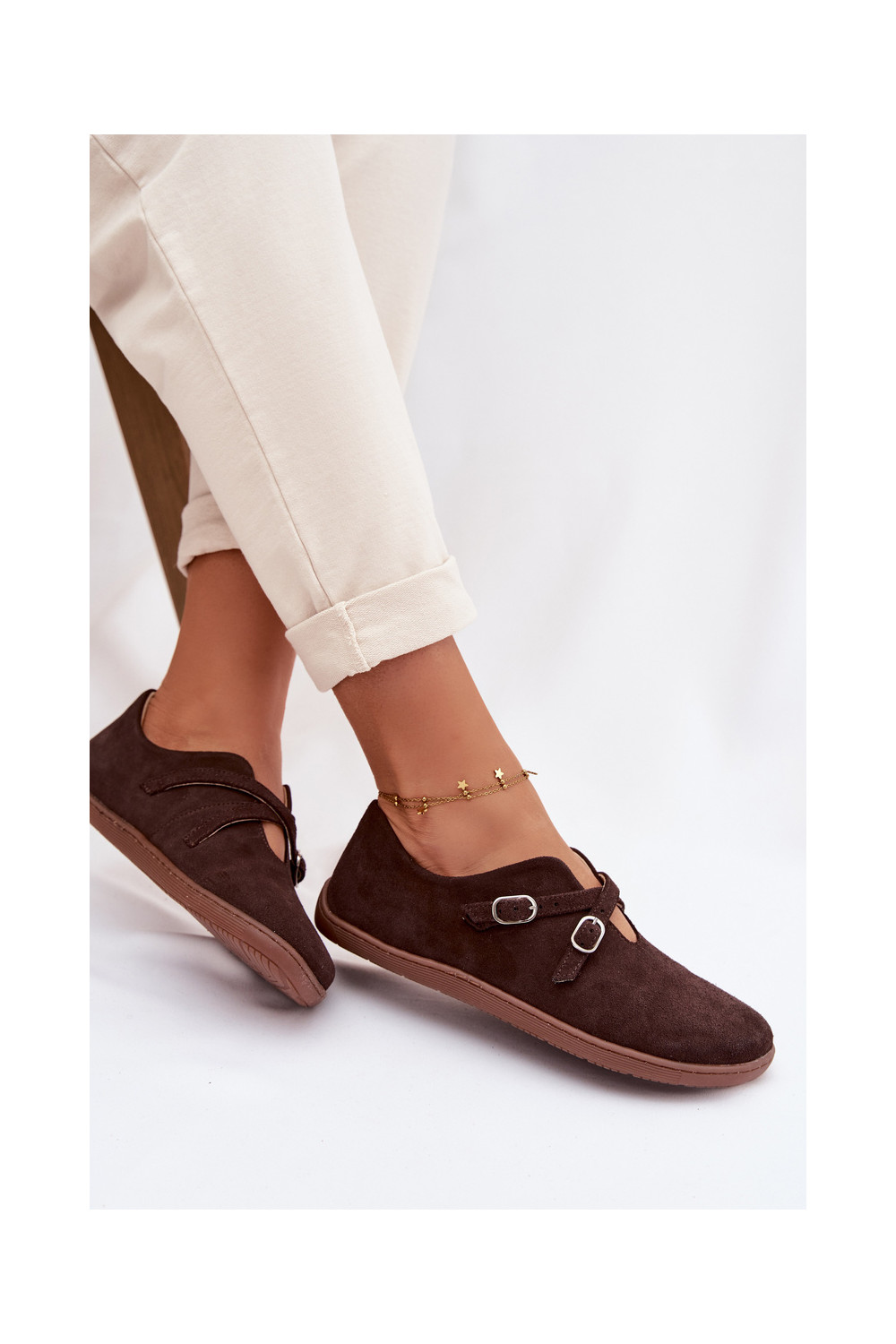 Oda iš zomšos batai Barefoot Moteriškas su juostelėmis Zazoo N1271 CzekoladoĮe