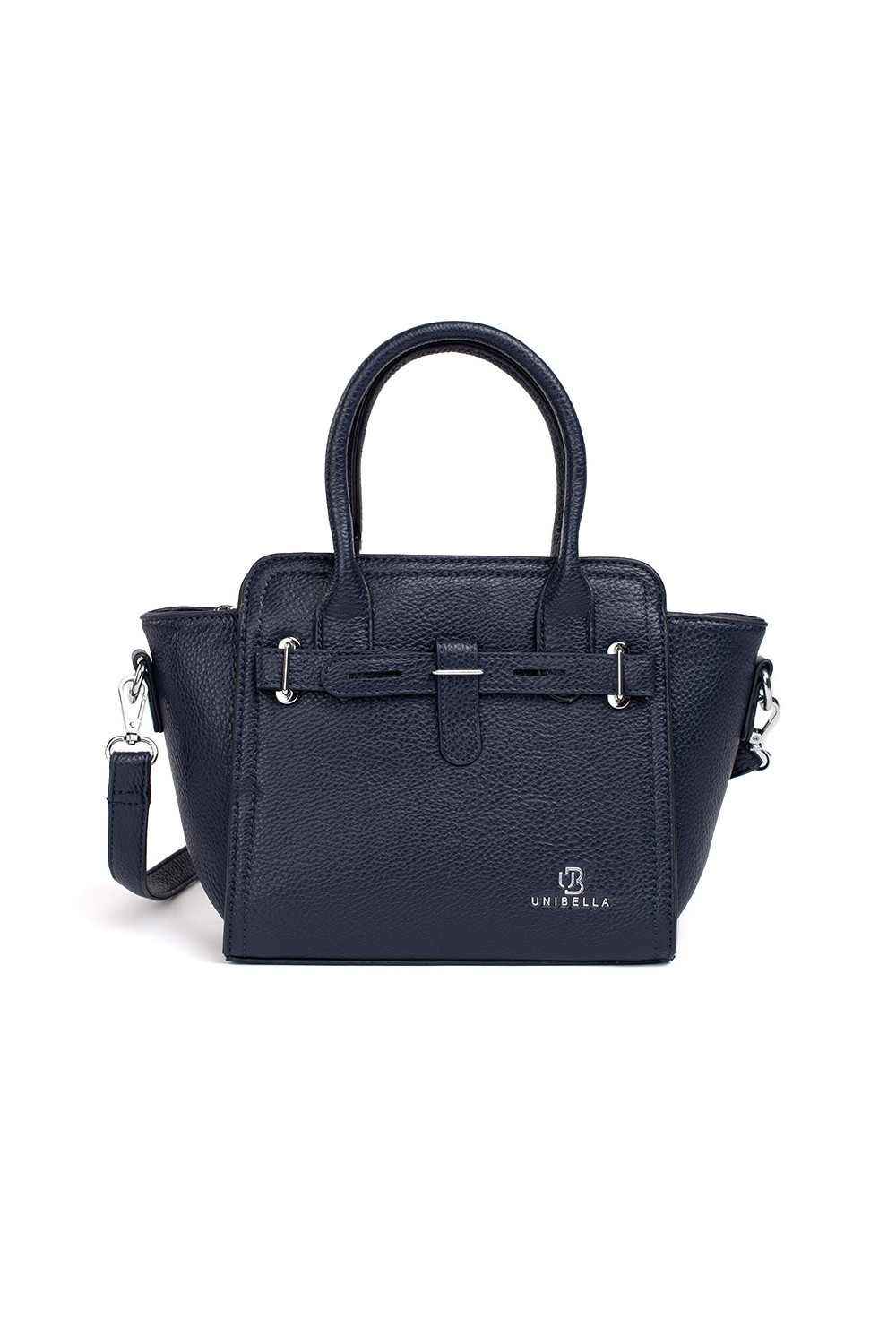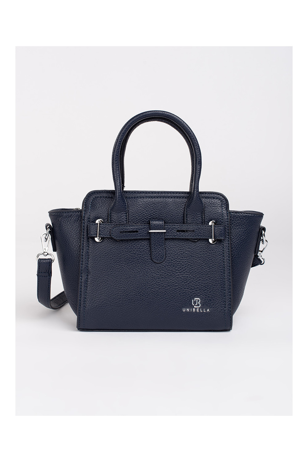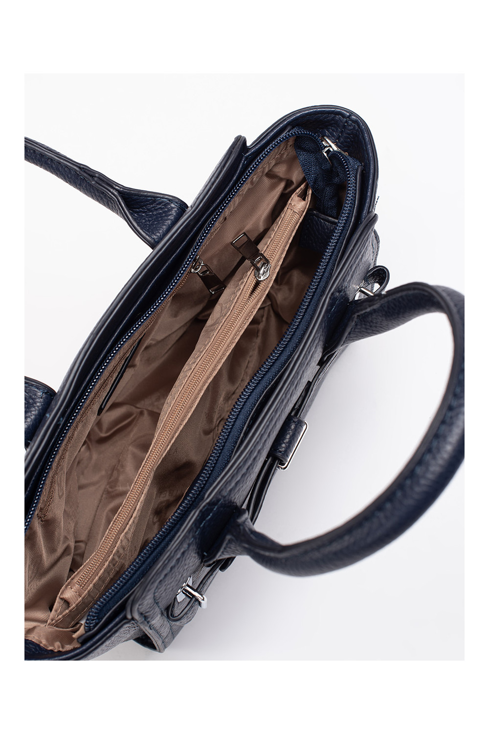 tamsiai mėlyna elegantiška rankinė su sidabriniais elemetais