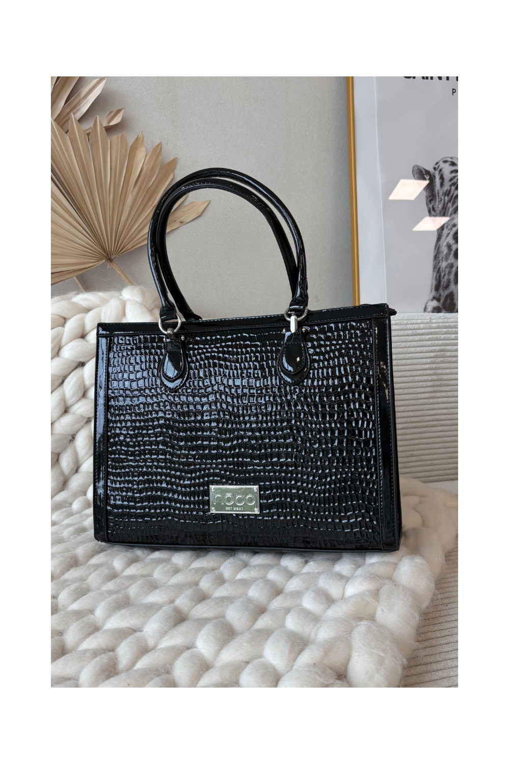 Lakuota rankinė su įspaustu raštu NOBO BAG6150-M20 juoda