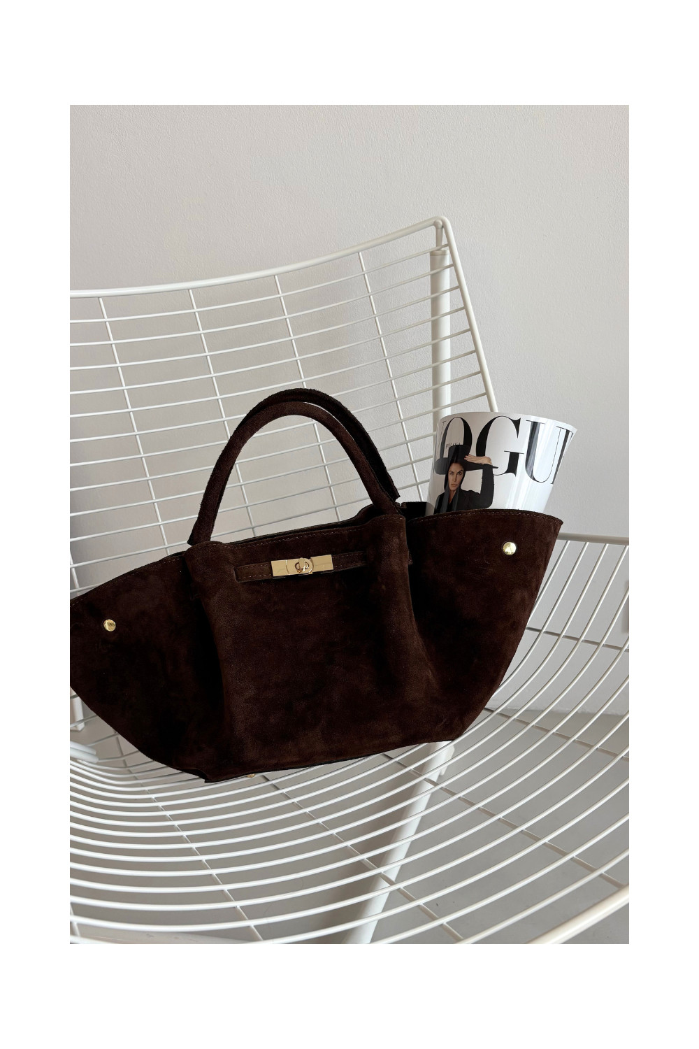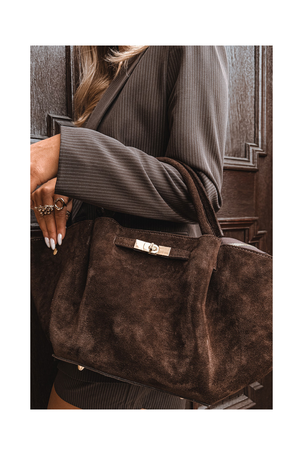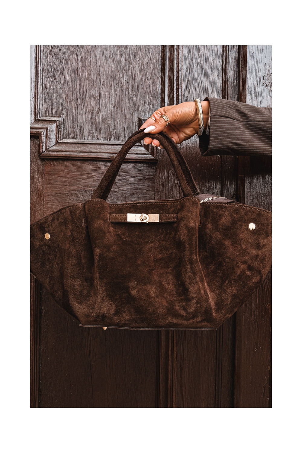 Šokoladinės spalvos dirbtinės zomšos rankinė Fiorenza